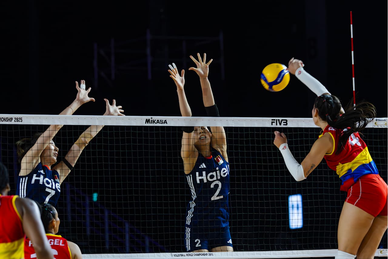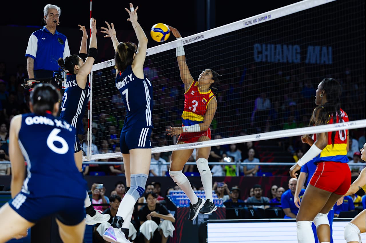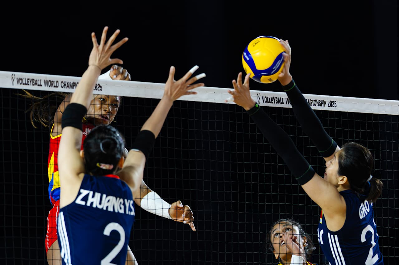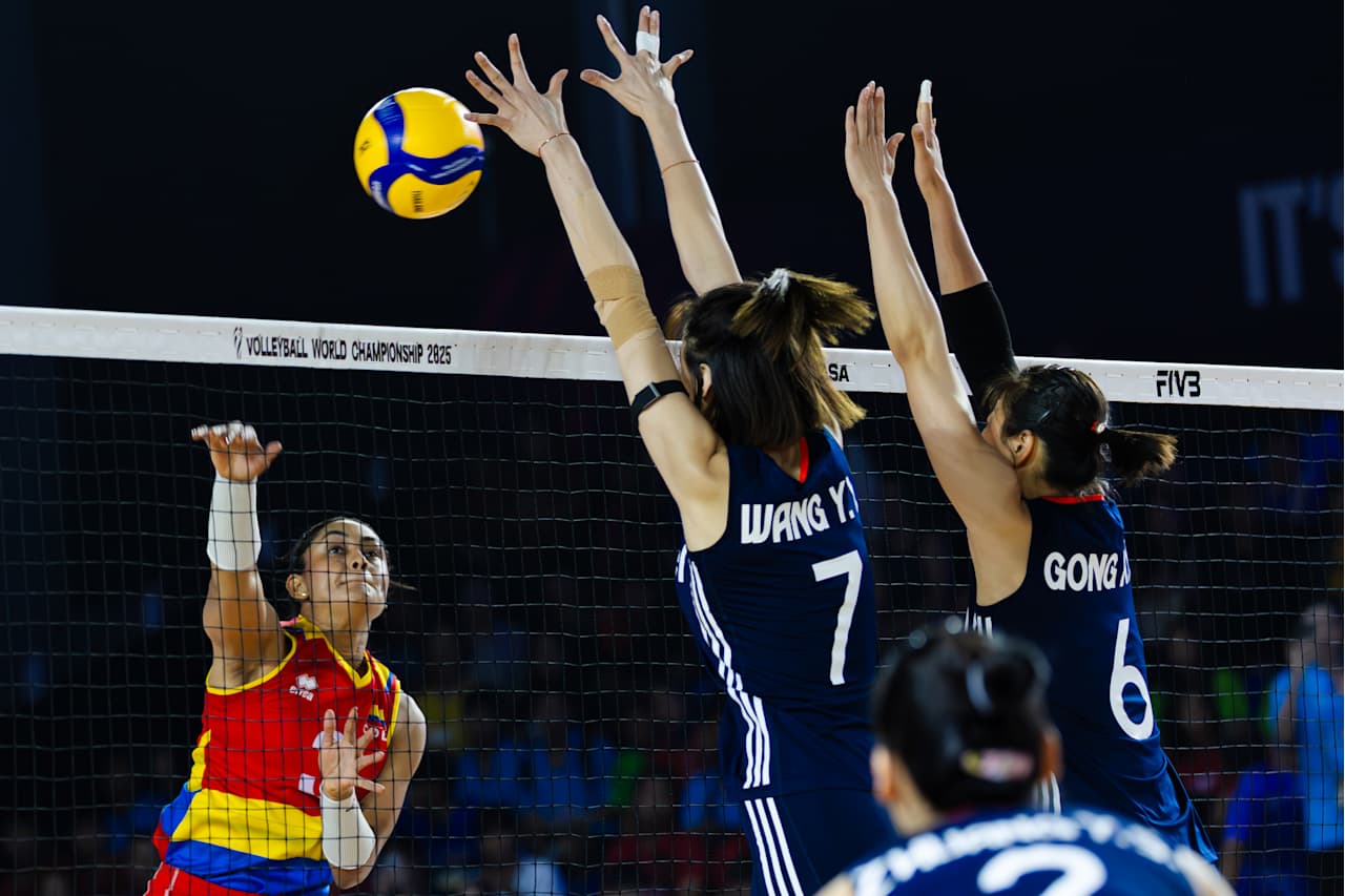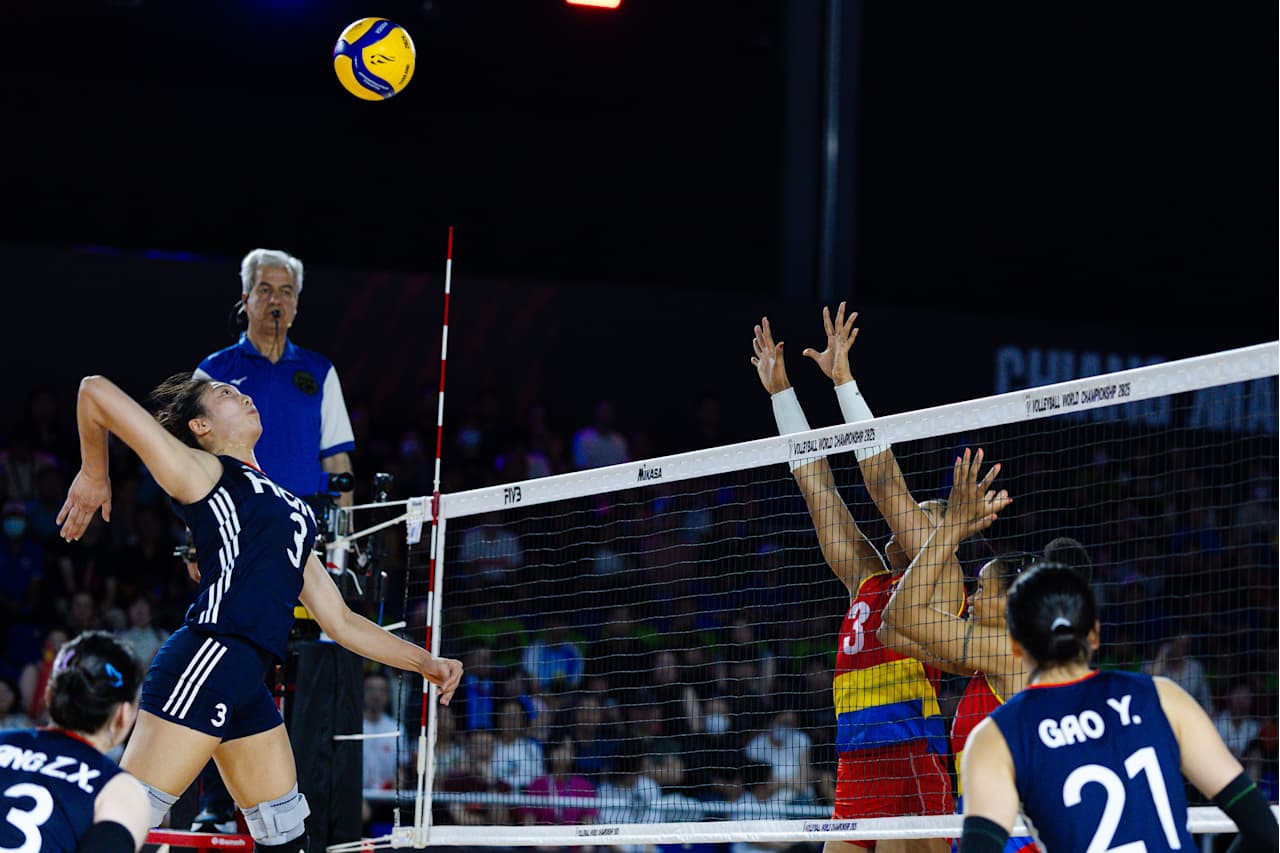 北京时间8月25日晚,2025年世界女子排球锦标赛在泰国结束小组赛第四比赛日的争夺。F组的中国女排3比1战胜哥伦比亚女排,四局比分为25比16、23比25、25比14、25比16。夺取两连胜的中国女排提前一轮锁定16强。(图片来源:国际排联)