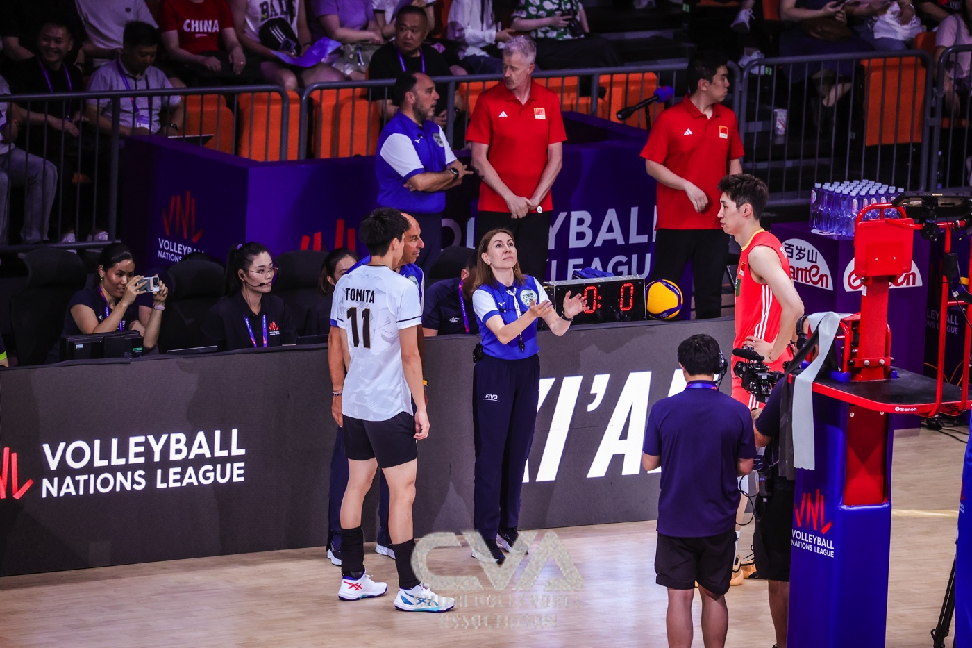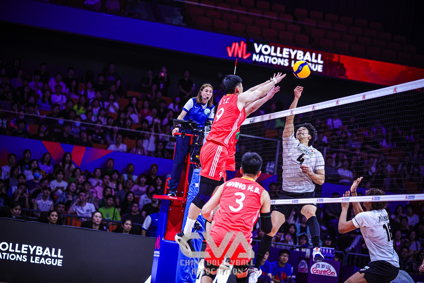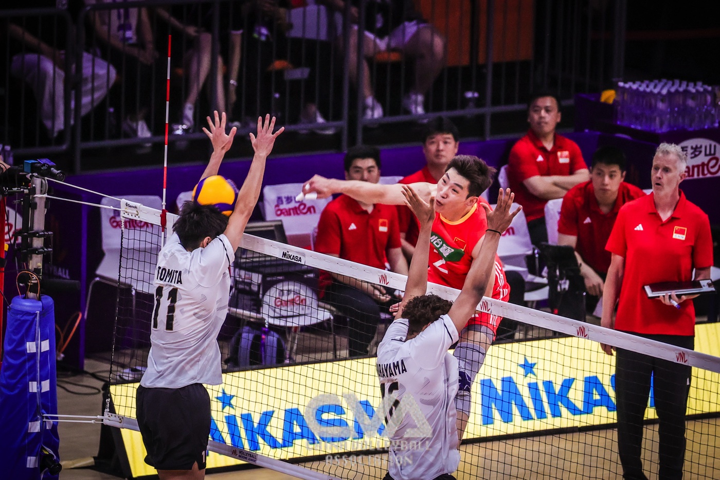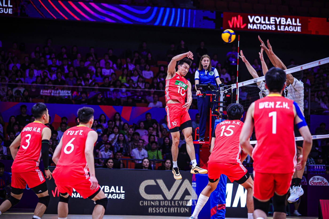 6月11日下午,2025年世界男排联赛中国西安站在曲江竞技中心展开首日的争夺。东道主中国男排0比3负于日本男排,三局比分为23比25、14比25、22比25。(摄影:朱琳)