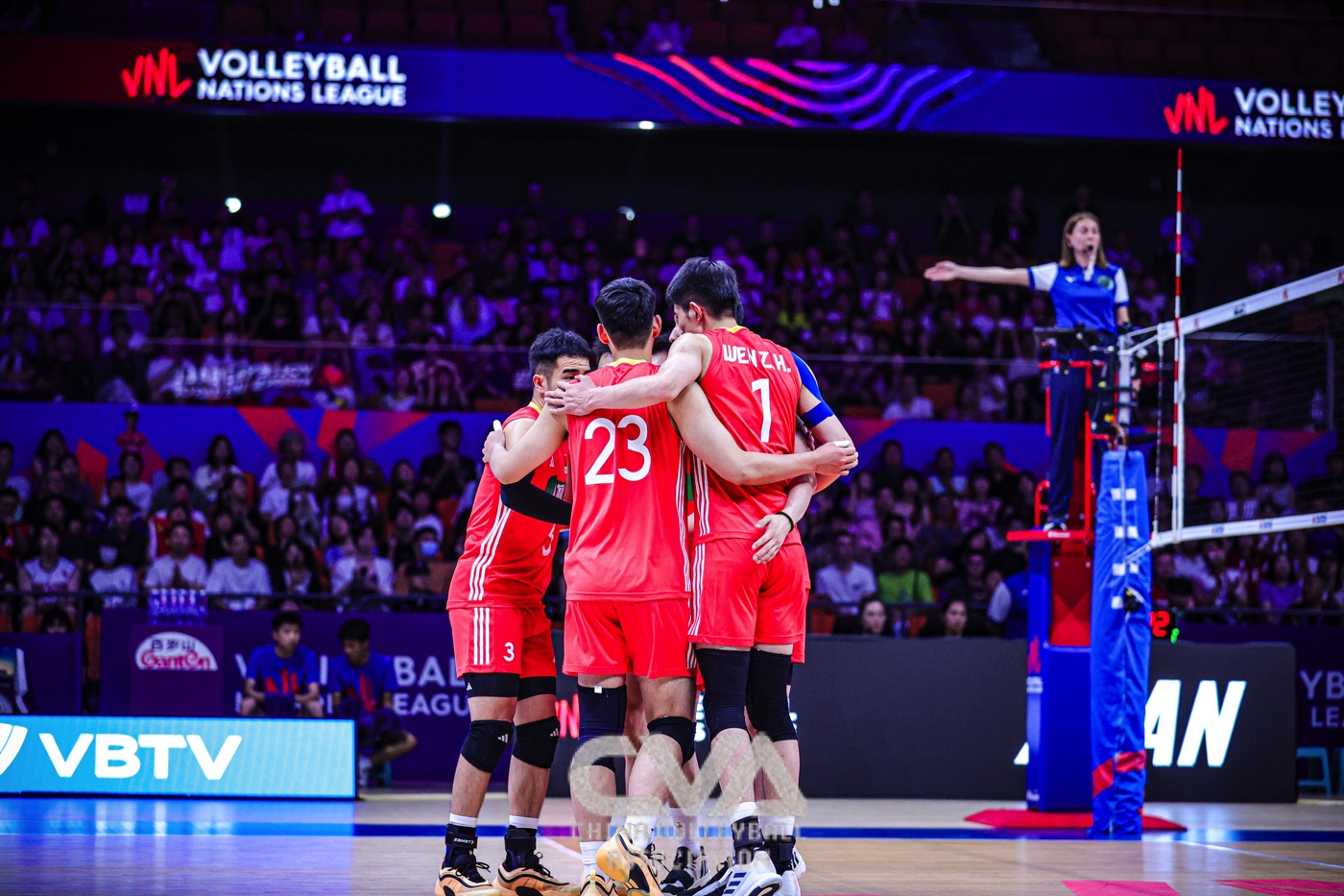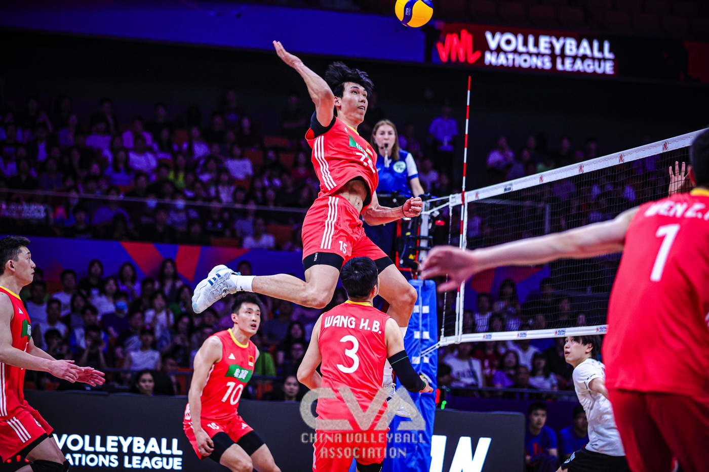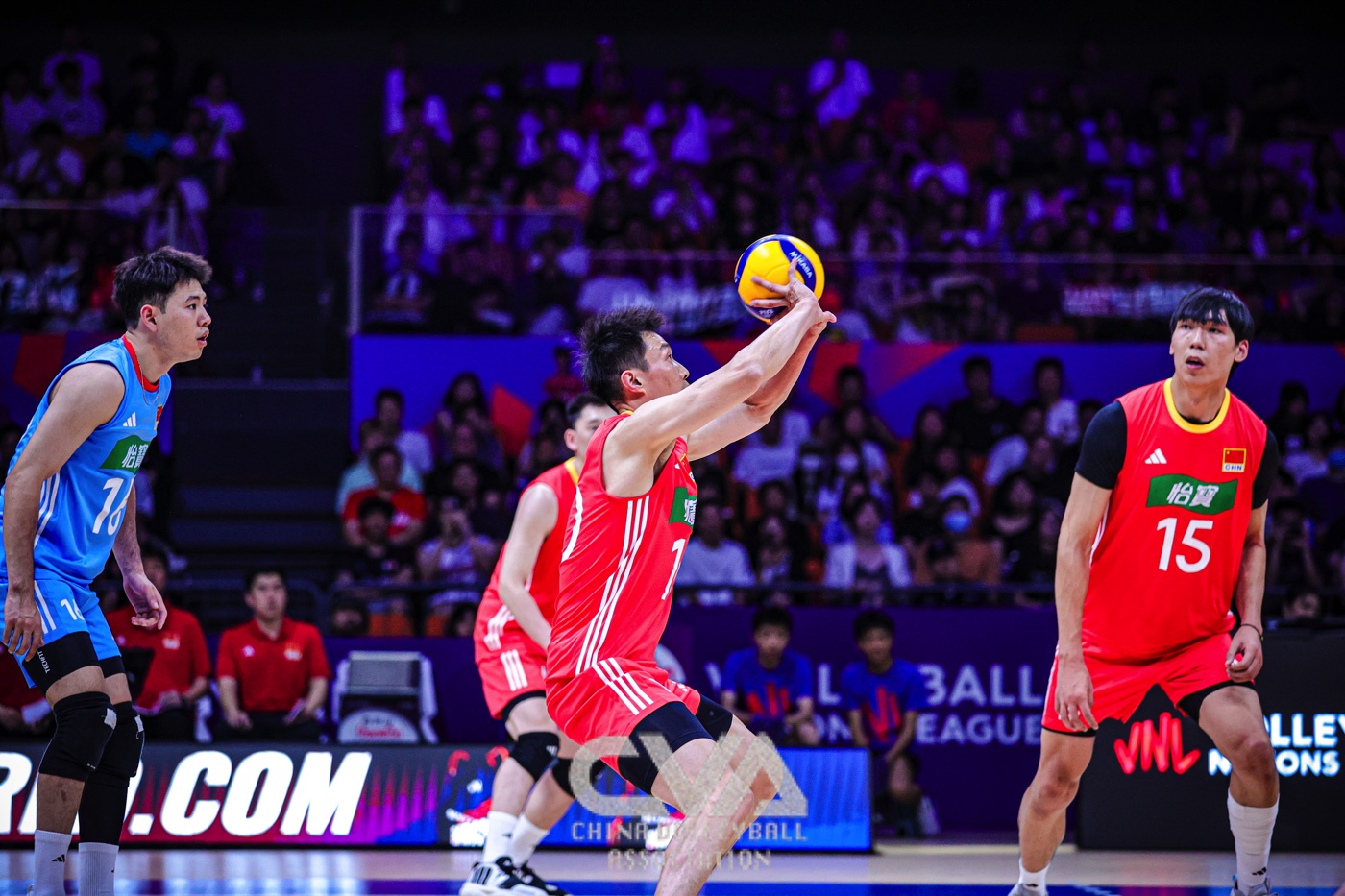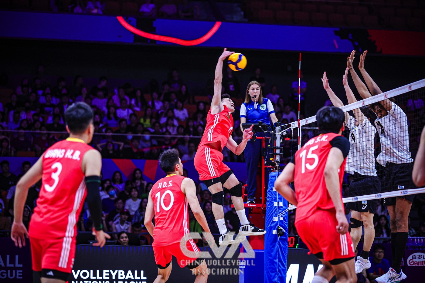 6月11日下午,2025年世界男排联赛中国西安站在曲江竞技中心展开首日的争夺。东道主中国男排0比3负于日本男排,三局比分为23比25、14比25、22比25。(摄影:朱琳)