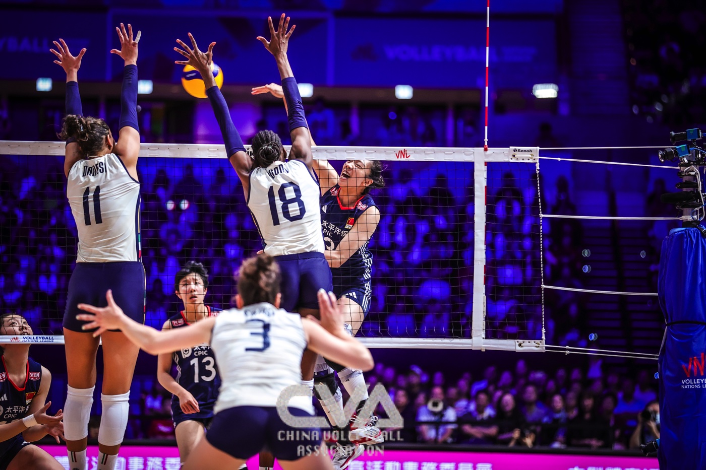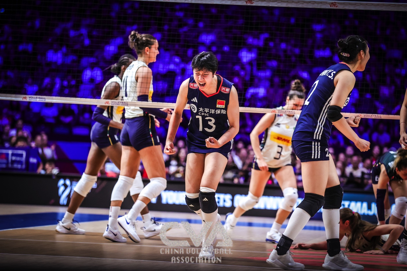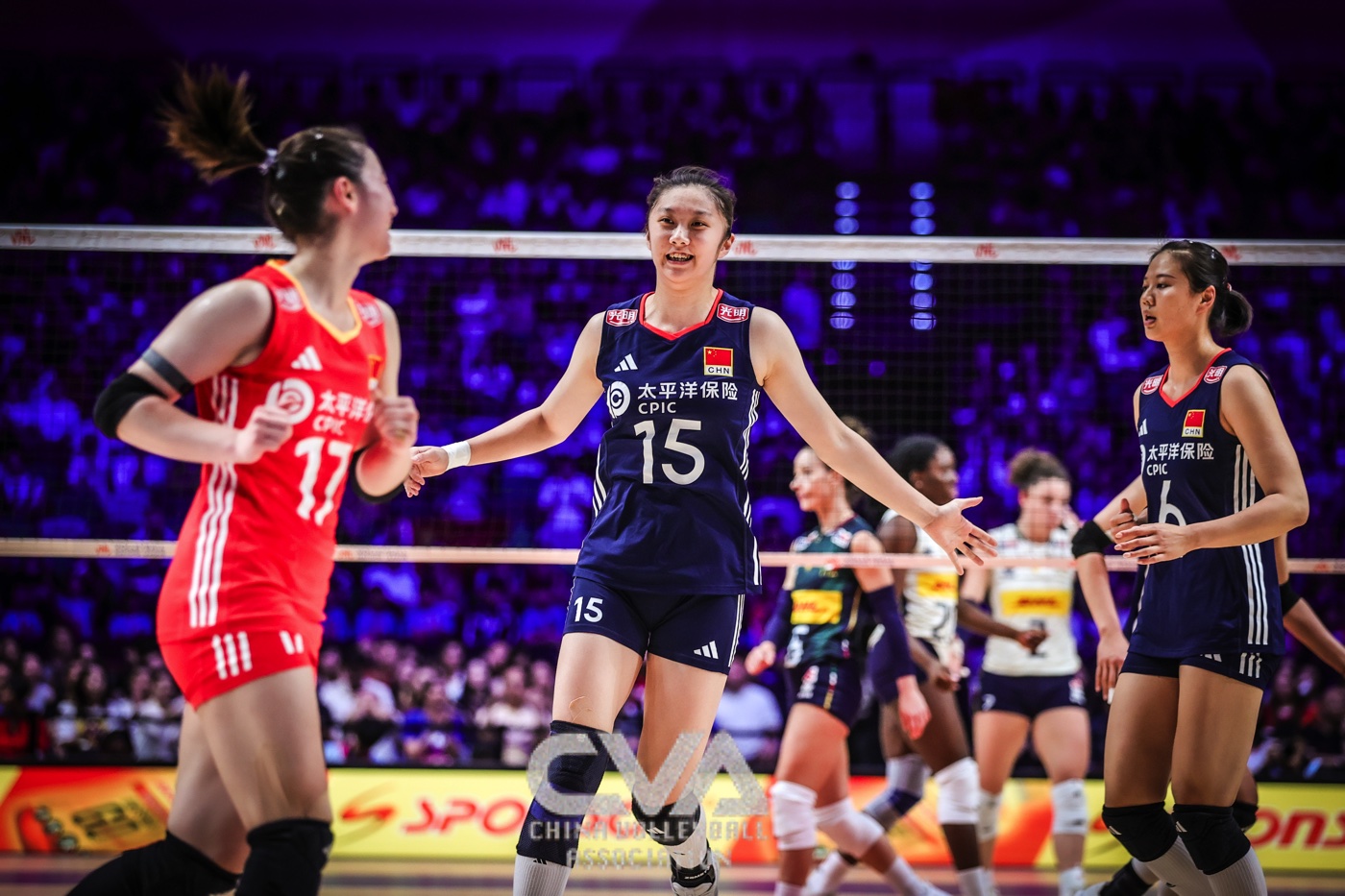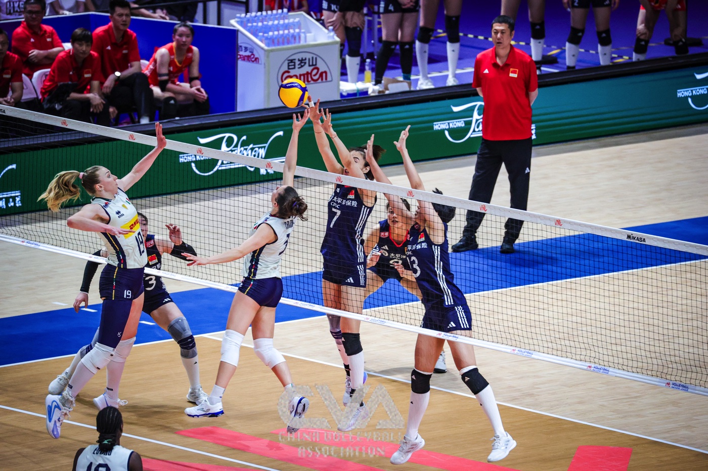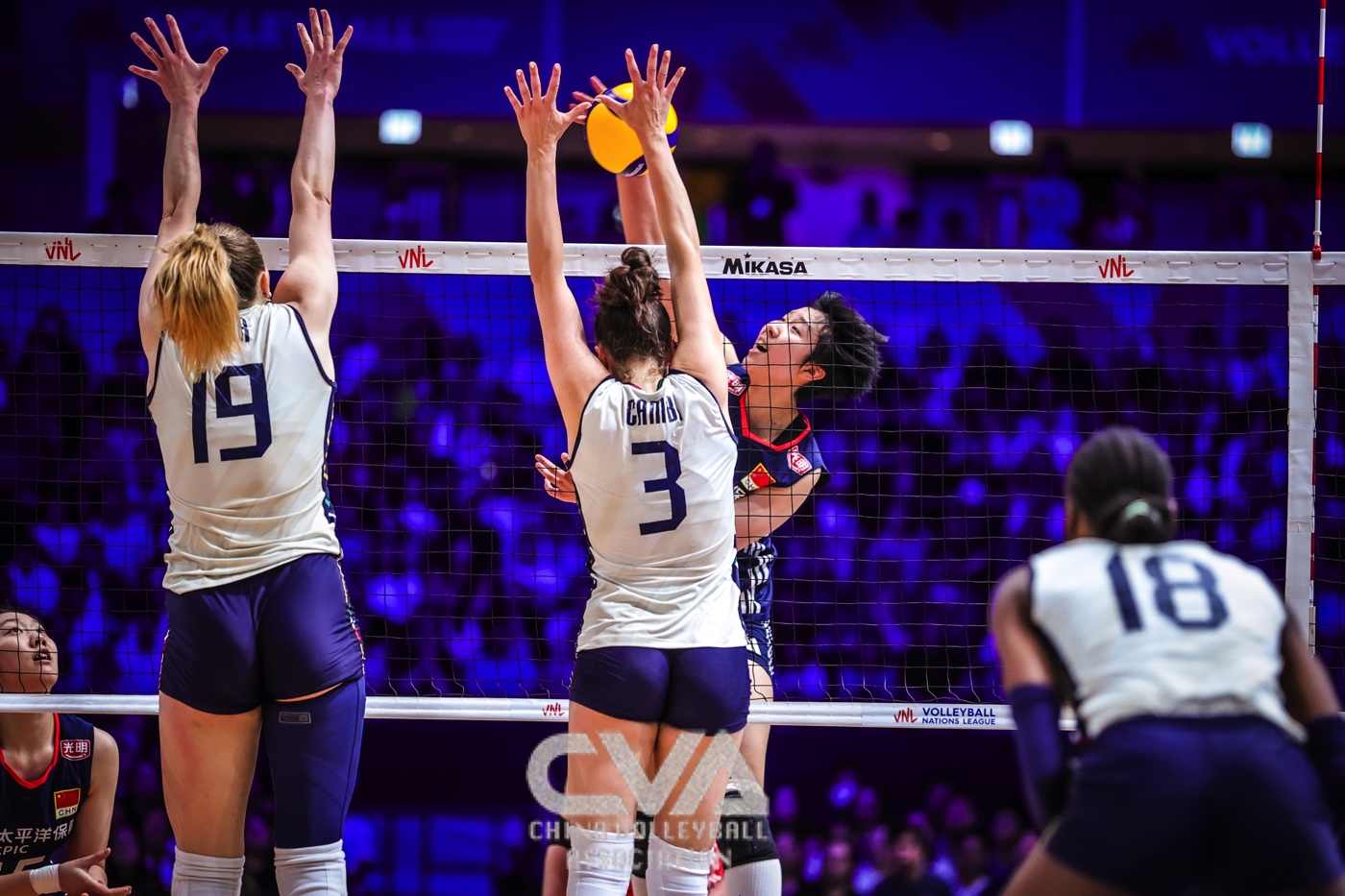 6月22日晚,2025年世界女排联赛中国香港站在启德体艺馆落下帷幕。在收官战的争夺中,面对奥运冠军、世界排名第一的意大利女排,东道主中国女排0比3负于对手,三局比分为21比25、30比32、11比25。(摄影:朱琳)