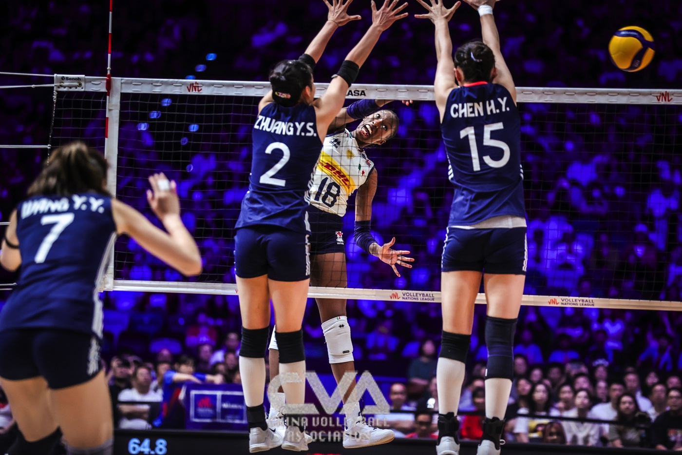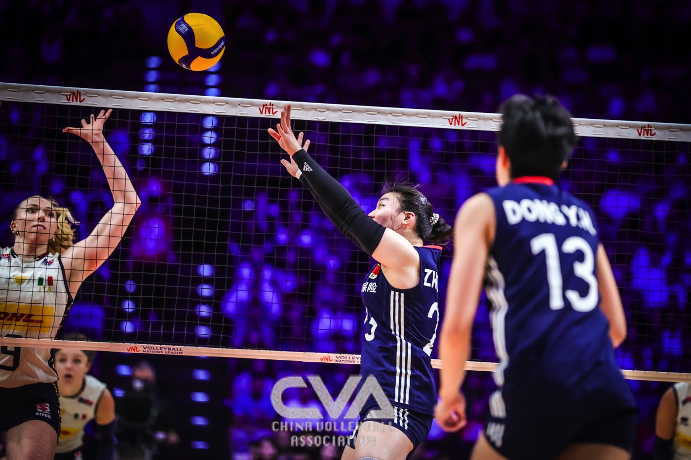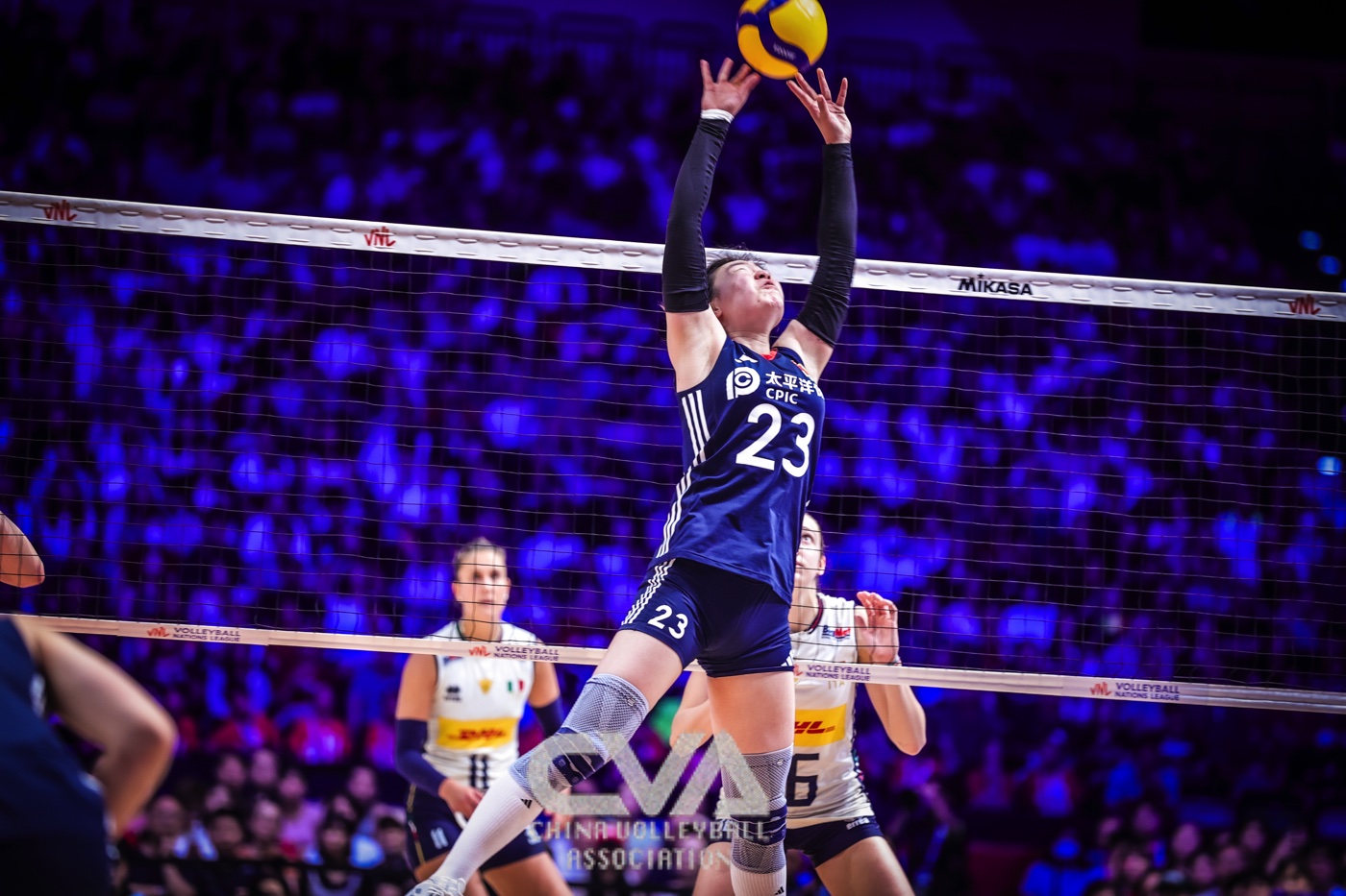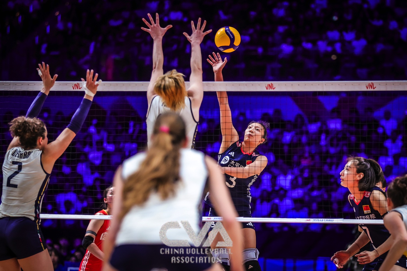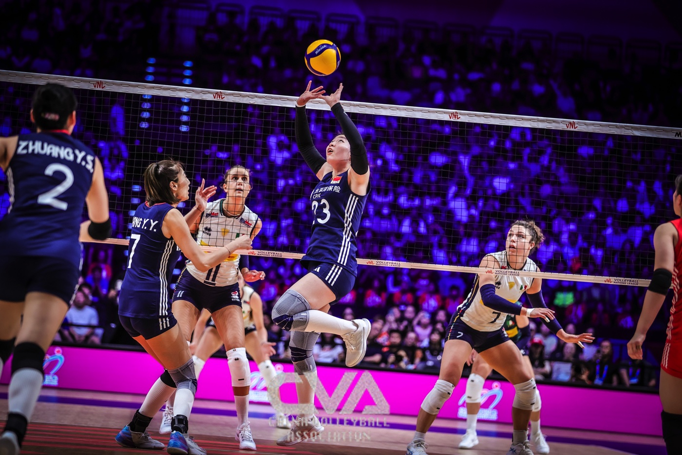 6月22日晚,2025年世界女排联赛中国香港站在启德体艺馆落下帷幕。在收官战的争夺中,面对奥运冠军、世界排名第一的意大利女排,东道主中国女排0比3负于对手,三局比分为21比25、30比32、11比25。(摄影:朱琳)