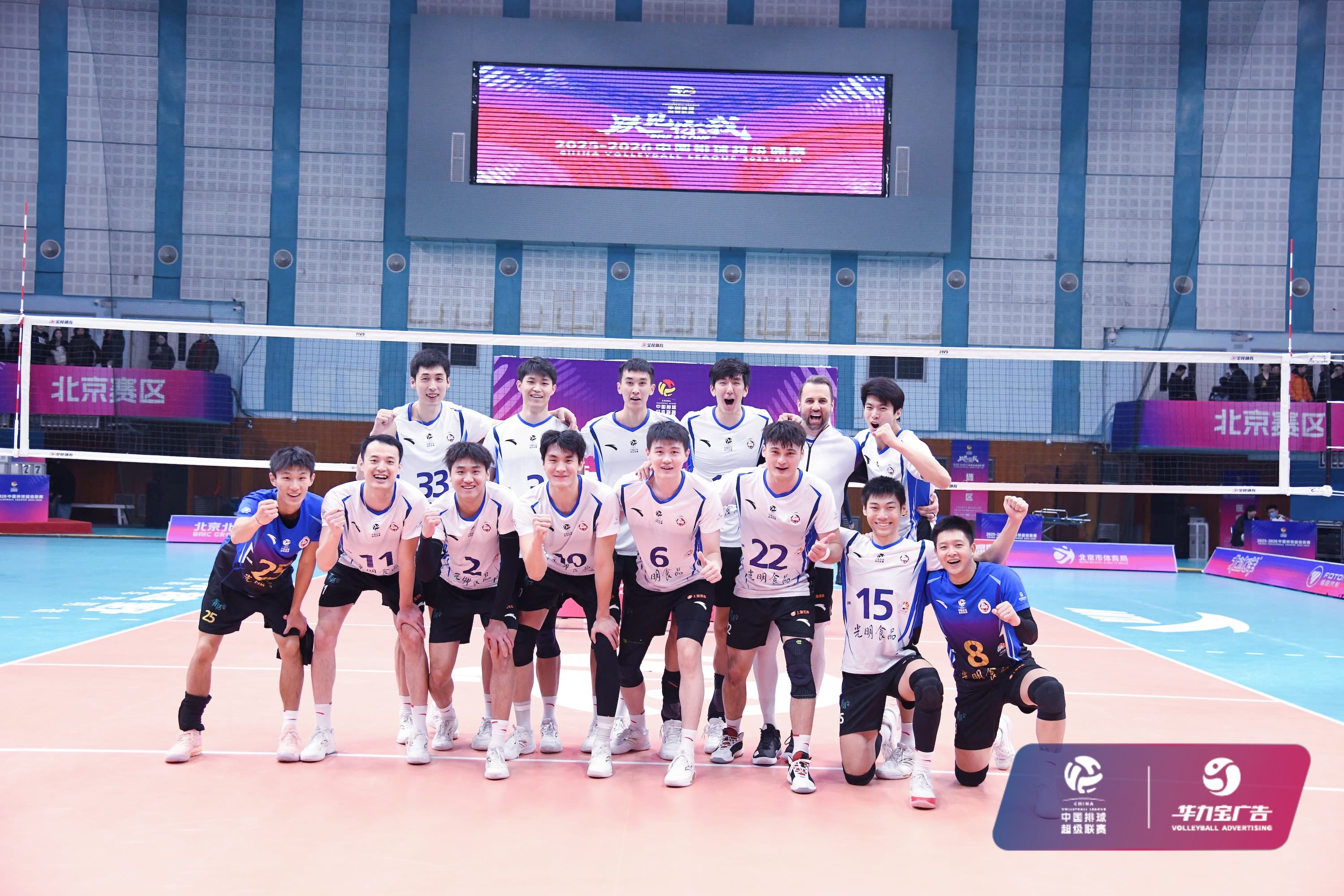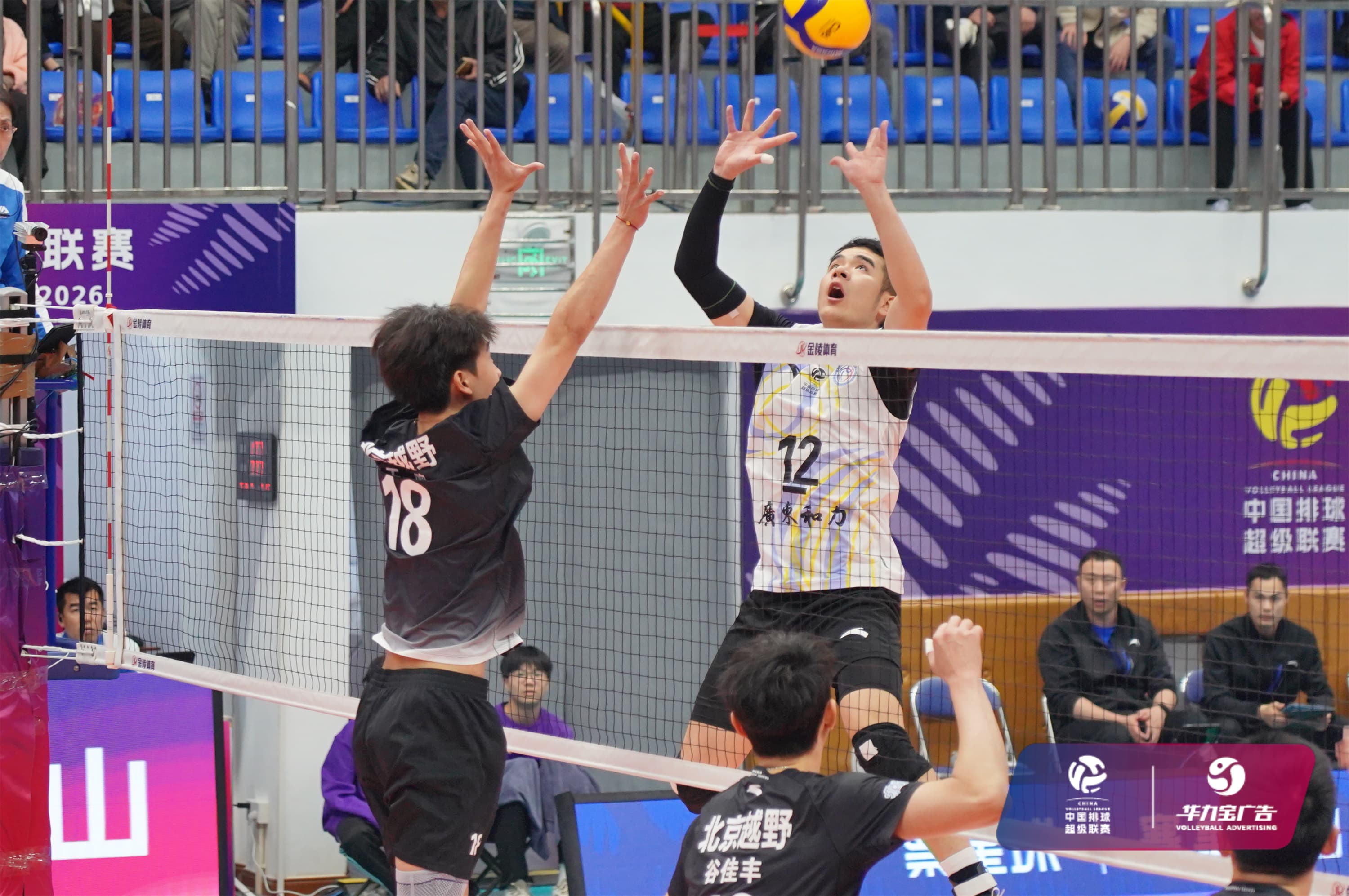 2026年1月11日晚,2025-2026中国男子排球超级联赛常规赛A级第八轮第31场比赛在北京市北京越野光彩体育馆结束。经过四局激战,北京北汽男排3比1战胜天津食品集团男排,四局比分为25比20、23比25、25比23、25比22。