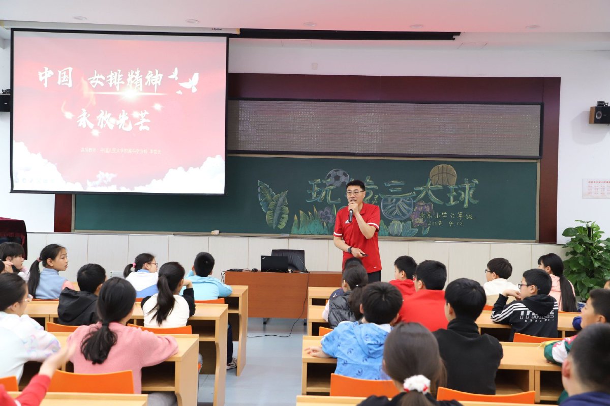 2024年4月12日9时,北京小学六年级全体师生齐聚一堂,认真学习由李世光老师带来的《中国女排精神永放光芒》讲座。通过“女排精神”宣讲,真实还原“女排精神”所形成的历史背景,了解中国女排在竹棚中刻苦训练、艰苦创业的过程,记住辉煌成就的来之不易,以便更好地继承和发扬中国女排精神。