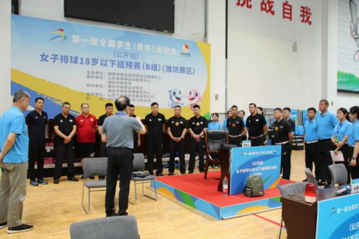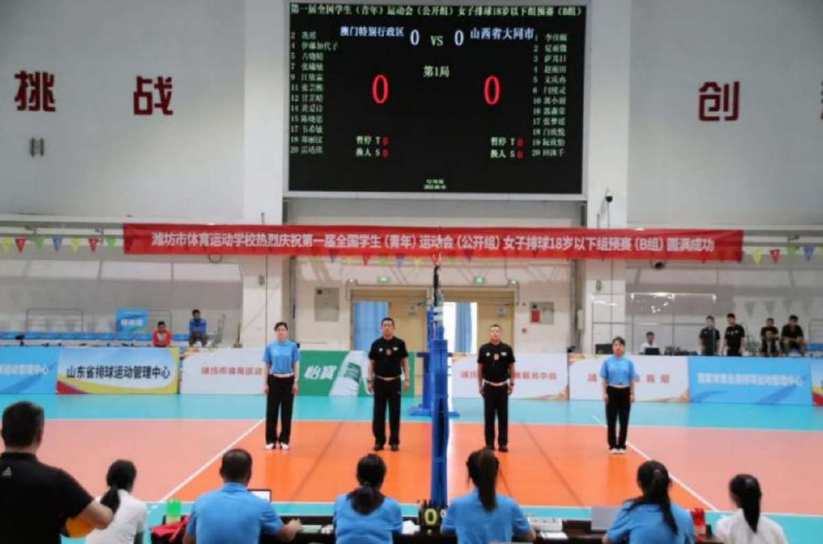 另外,秦皇岛、乐山、漳州、潍坊四个赛区的参赛队伍均按照赛前计划进行了适应场地训练。6月20日下午13点,第一届全国学生(青年)运动会(公开组)18岁以下组排球预赛将在四地同时开赛。