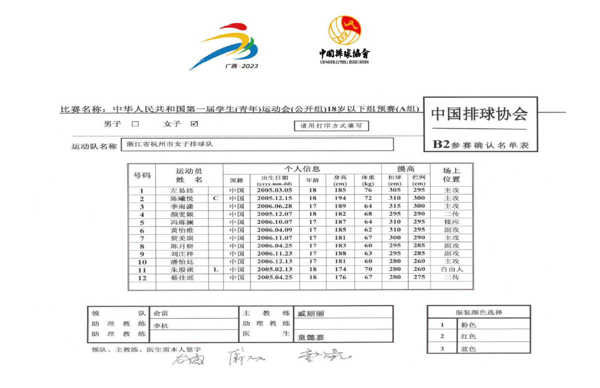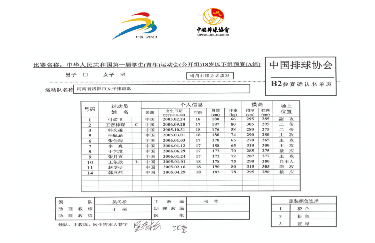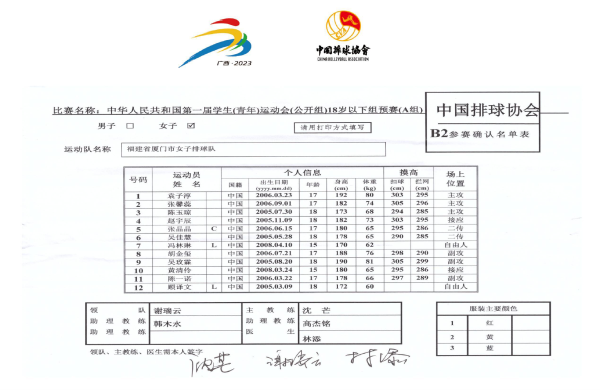 第一届学青会(公开组)18岁以下组女排预赛A组漳州赛区1号公告