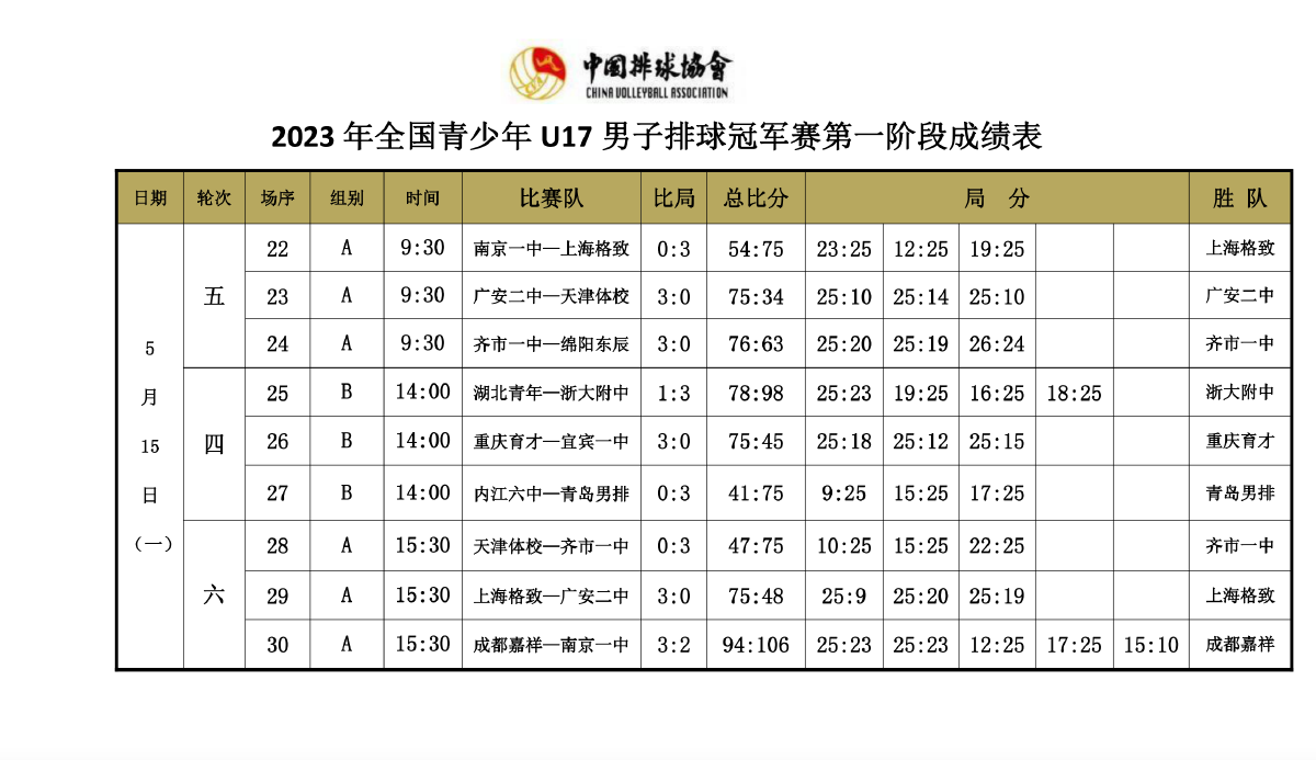 2023年全国青少年U17男子排球冠军赛5号公告