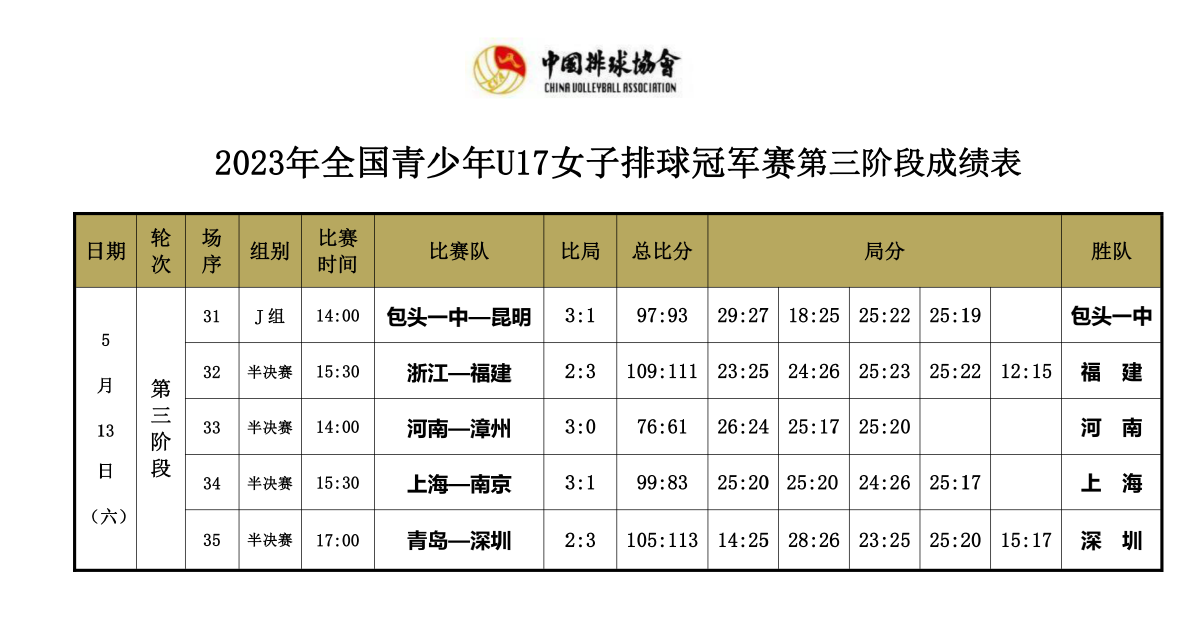 2023年全国青少年U17女子排球冠军赛8号公告