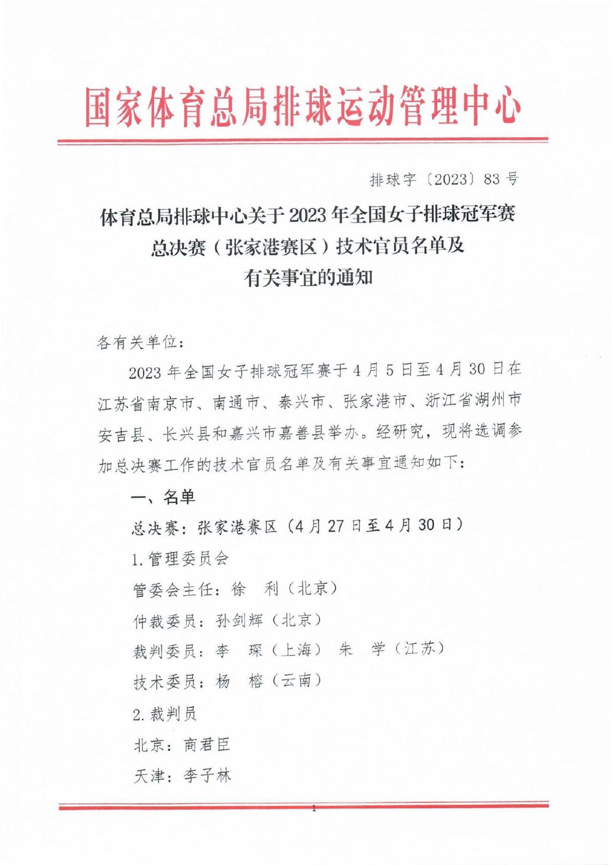 2023全国女排冠军赛总决赛(张家港赛区)技术官员及有关事宜的通知