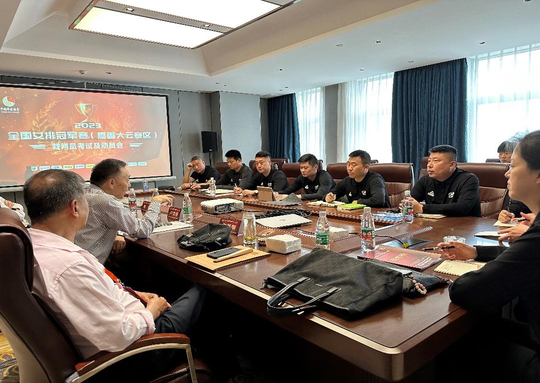 4月19日下午,管委会组织进行了赛前演练,并于当晚在嘉善万联城酒店会议室召开了2023年全国女子排球冠军赛F组(嘉善赛区)组委会暨技术会议。