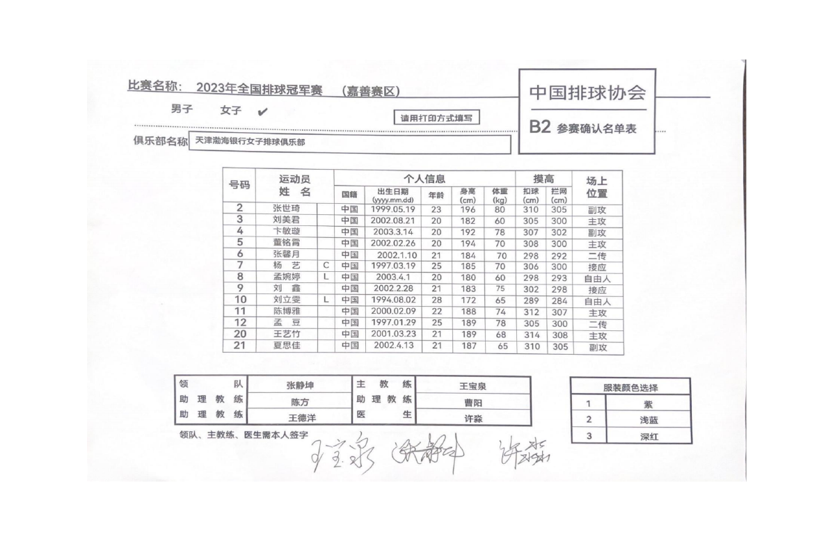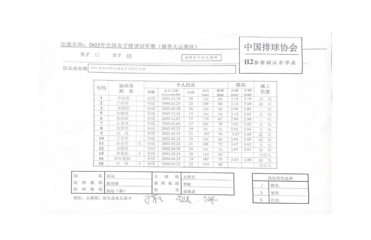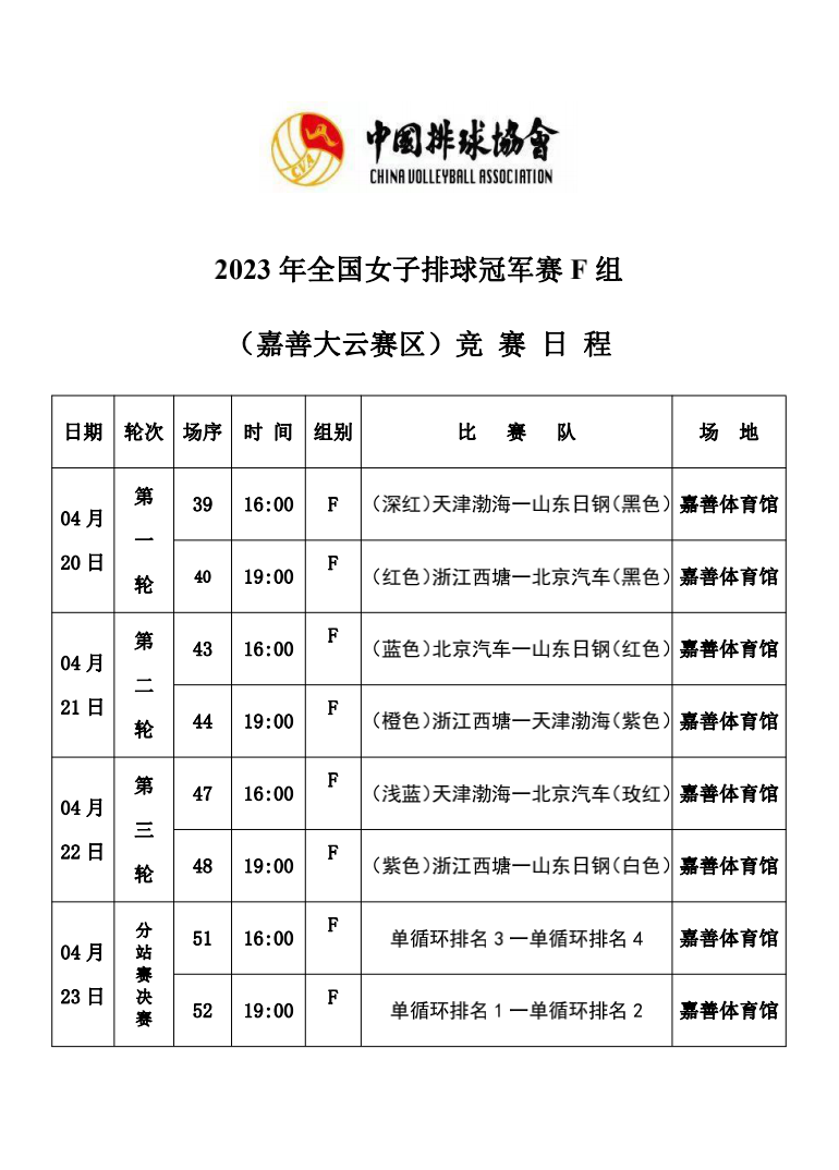 2023年全国女排冠军赛第三站F组(嘉善赛区)1号公告