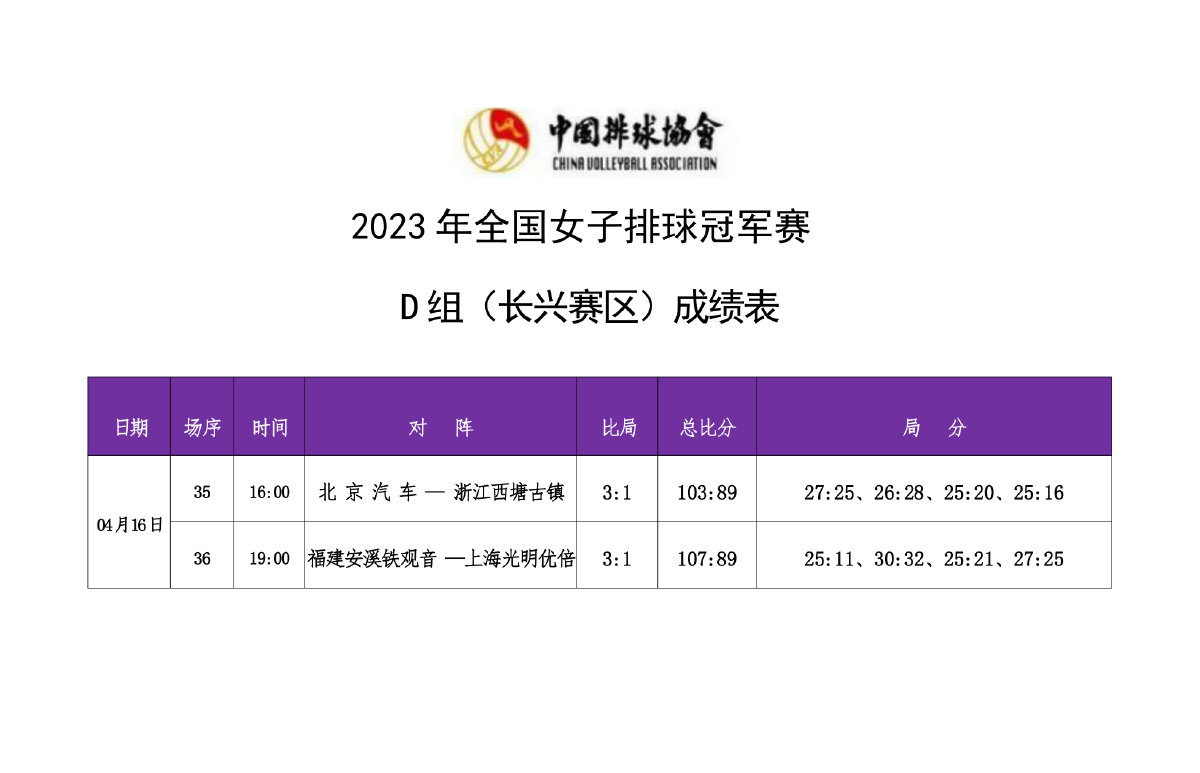 2023年全国女排冠军赛第二站D组(长兴赛区)5号公告