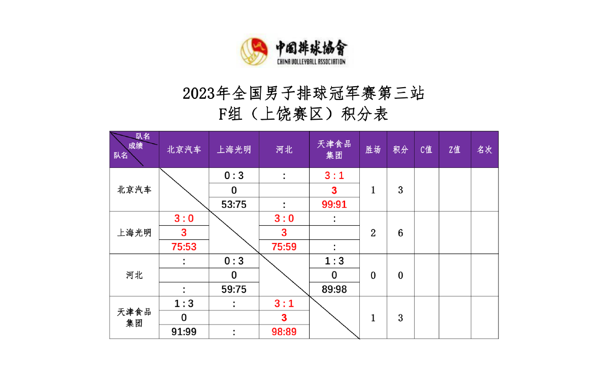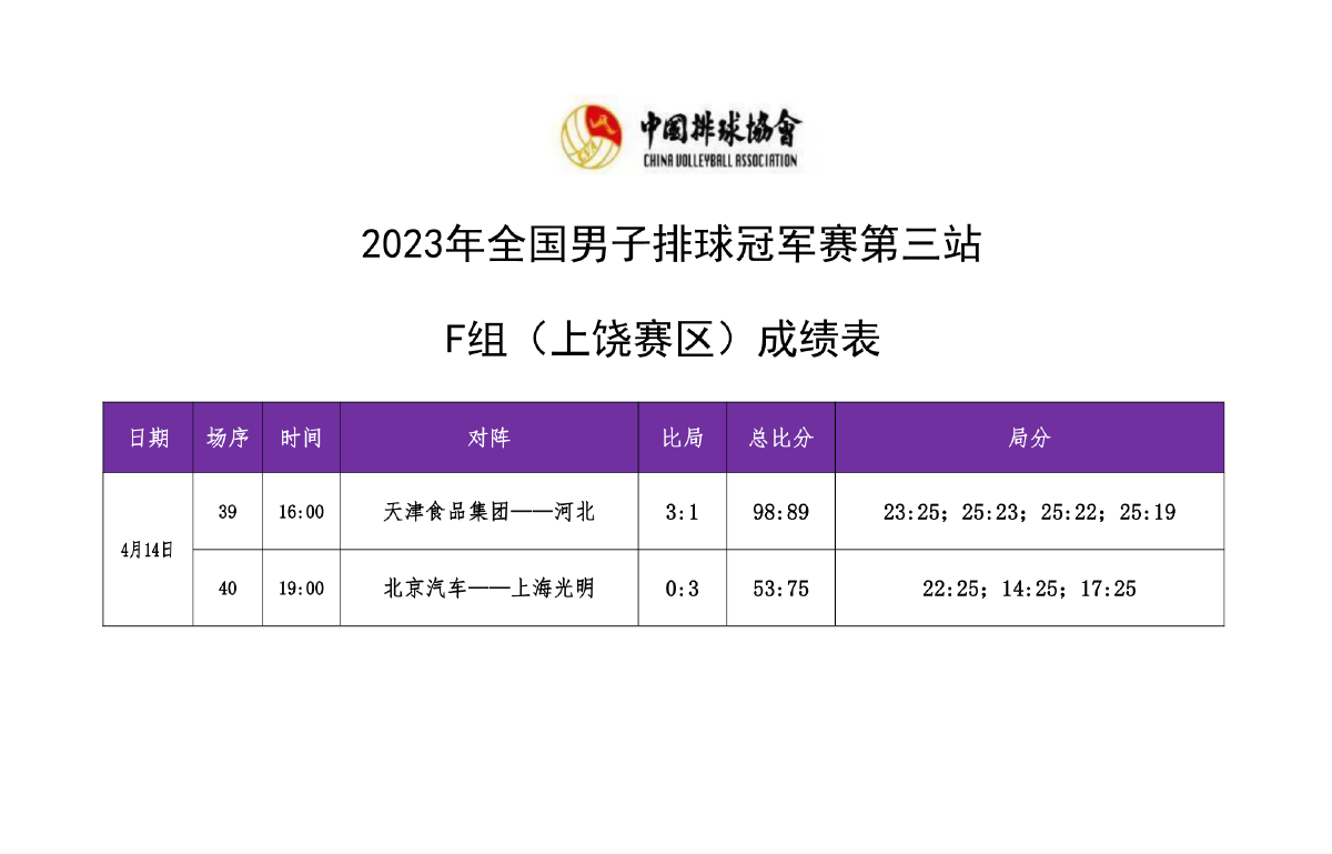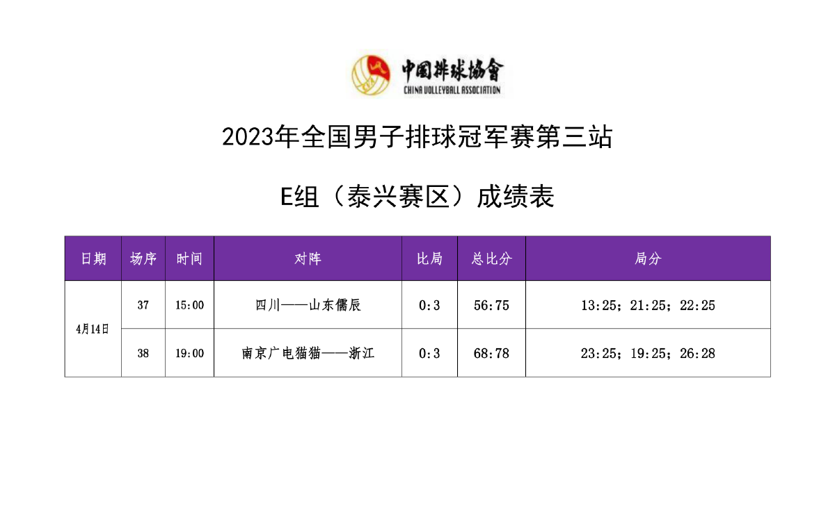 2023年全国男排冠军赛第三站E组和F组3号公告