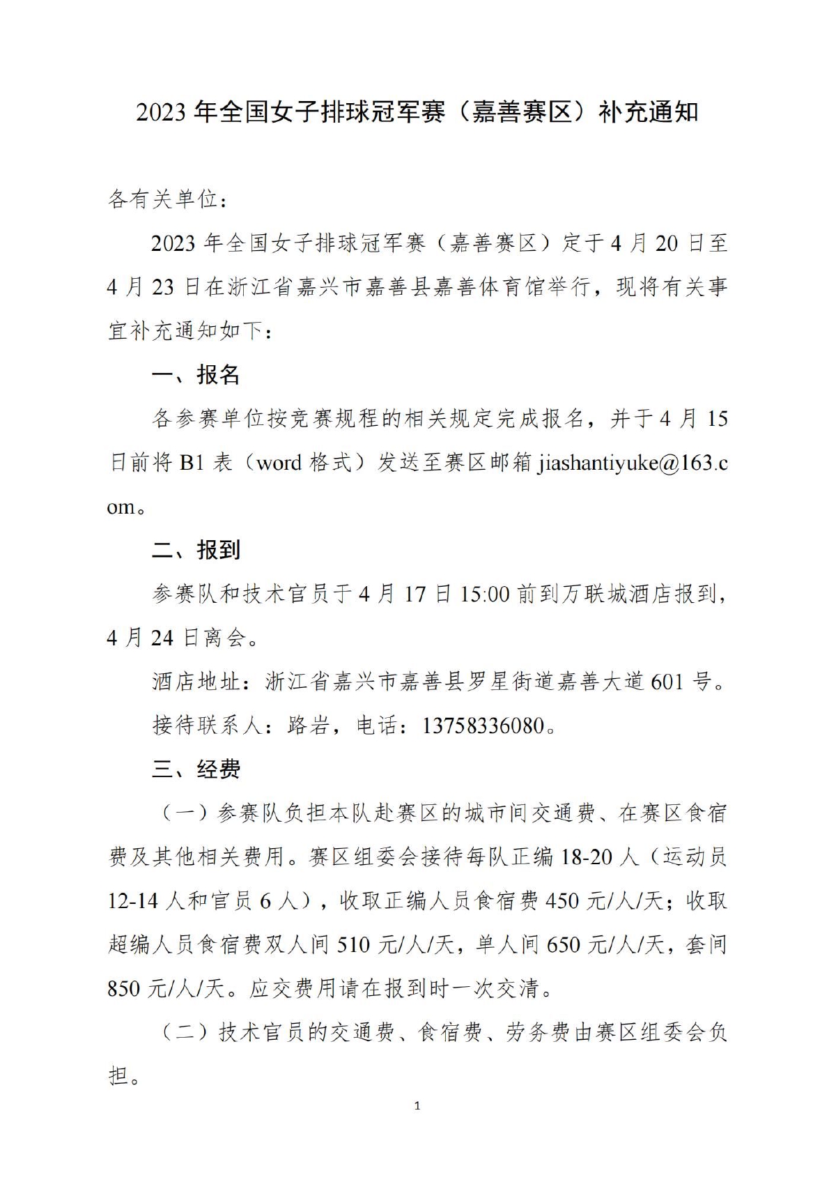 2023全国女排冠军赛(嘉善赛区)补充通知