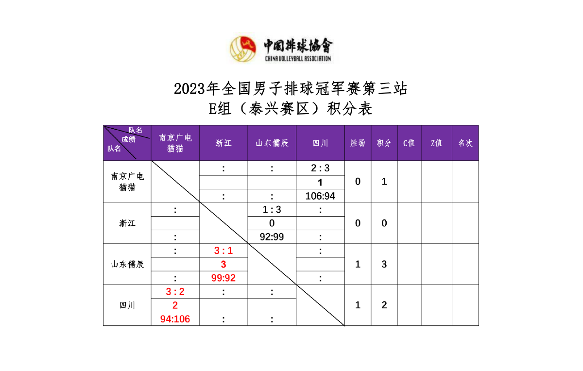 2023年全国男排冠军赛第三站E组和F组2号公告