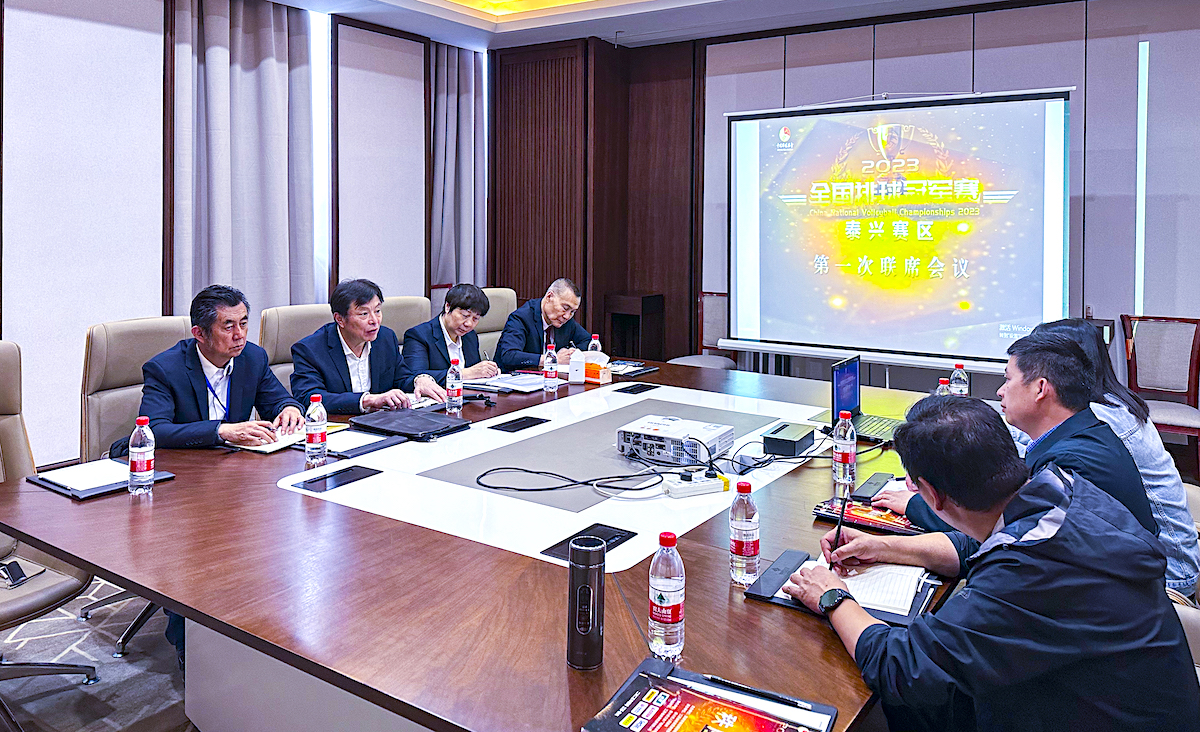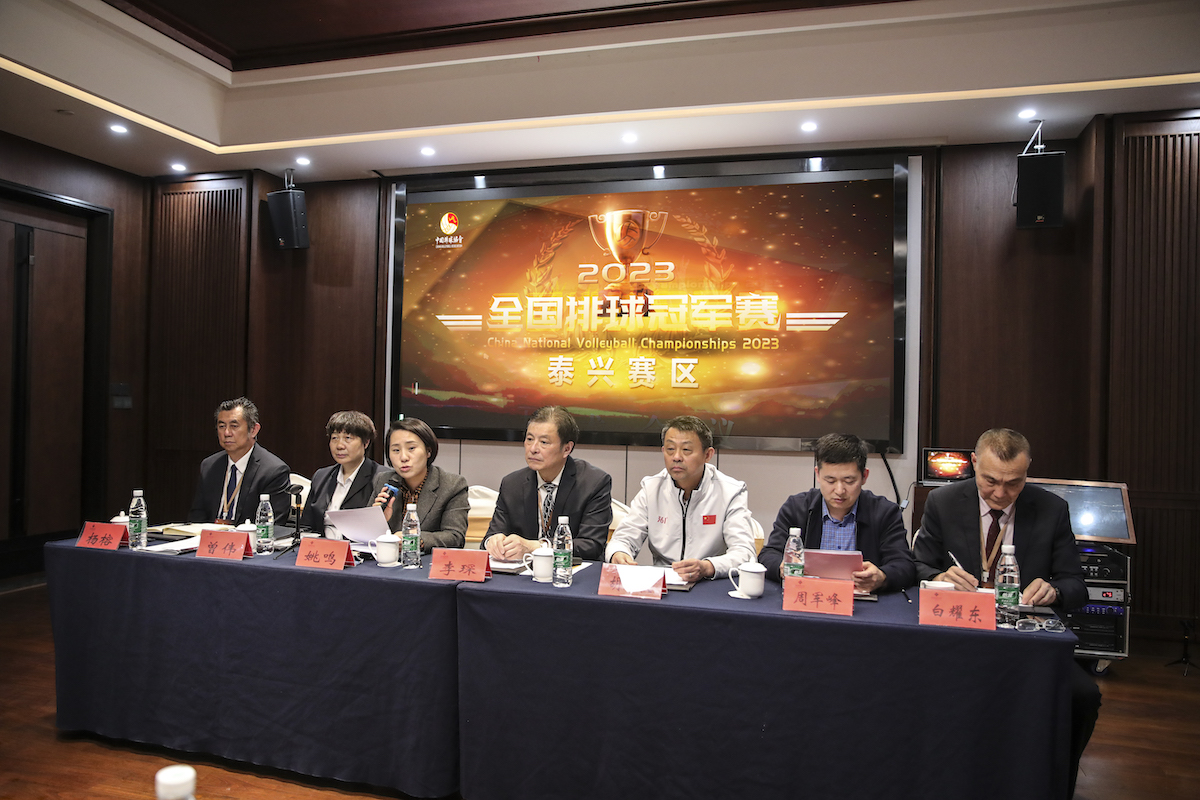 4月12日上午技术官员参加了理论培训和考试,中午再次检查场地并进行了赛前演练。技术官员们从身体、心理和业务上都做好了充分的赛前准备。当晚,2023年全国男排冠军赛(泰兴赛区)组委会暨技术会会议在泰兴金陵国际大酒店会议室召开。赛区相关领导在组委会上做了热情洋溢的致辞;技术会上管委会成员就各自分管业务方面向与会运动队做了讲解;赛区组委会从接待酒店的安保以及食品卫生、消防设施、交通安排等方面介绍了赛事的相关准备情况,从规范标准、器材、功能房等方面介绍了场地准备情况,同时,针对新闻宣传和旅游展示以及安保进行了简要说明。赛前准备一切就绪。