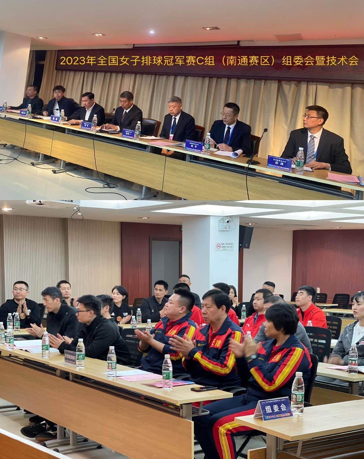 4月11日晚19:00,组委会暨技术会议在南通市体育馆会议室召开。南通市崇川区教育体育局局长陆红兵致欢迎词,南通市体育局副局长刘涛代表赛区组委会发言。管委会主任对各参赛运动队和裁判员提出明确要求,要求大家提高政治站位,端正态度、顾全大局,严抓赛风赛纪和安全稳定,确保比赛顺利完成。