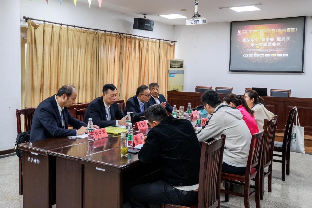 晚上,长兴赛区技术会议在驻地酒店召开,管委会、组委会、裁判员及四支参赛队代表参加会议。长兴县文广旅体局副局长陈新国致欢迎辞,他表示赛事能在长兴举办是对长兴县赛事承办能力的高度肯定和信任,长兴是前中国女排运动员周苏红的家乡,能在家门口看到高规格赛事,充分说明了我们拥有强大的群众排球热情和良好的全民体育氛围,对排球运动有着深深的民族情结与广泛的关注度,长兴也将以最高的标准、最优的服务和最有力的保障,确保赛事顺利举行。最后赛事管委会主任讲话,要求各运动队要严格按照体育总局和排球中心相关要求,提高自身政治修养,加强赛风赛纪和反兴奋剂工作,珍惜参赛机会,强化体育道德风尚意识;裁判员要确保公平公正执裁;赛区组委会要做好后勤保障工作及各项安全工作,希望大家共同努力,确保赛事圆满成功。