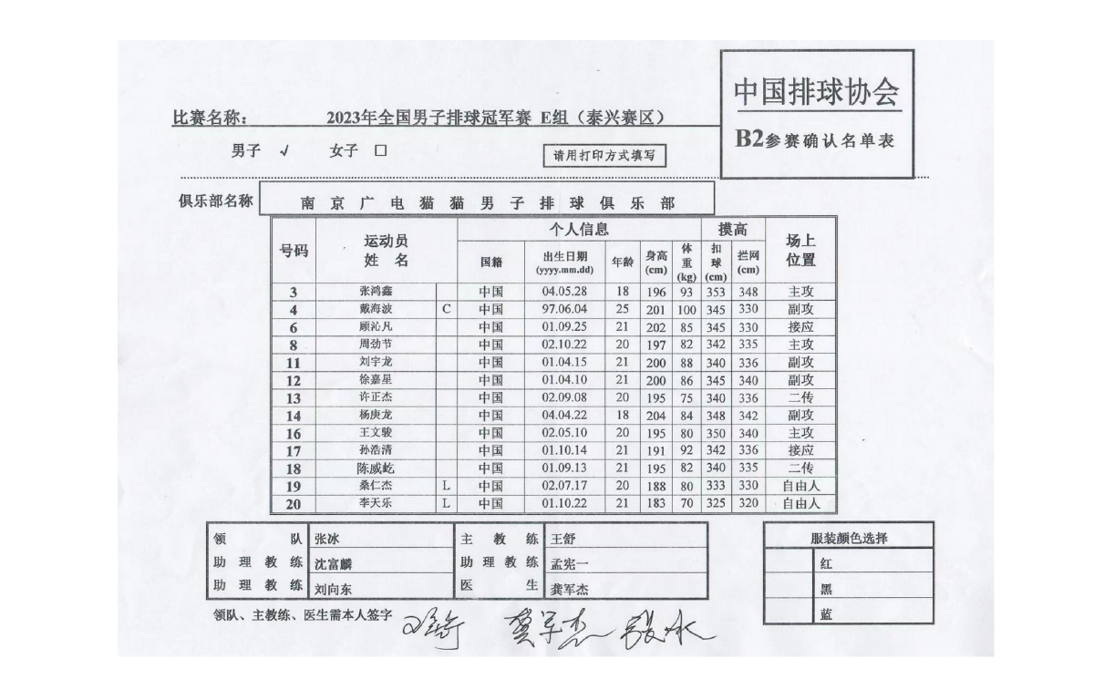 2023年全国男排冠军赛第三站E组(泰兴赛区)1号公告