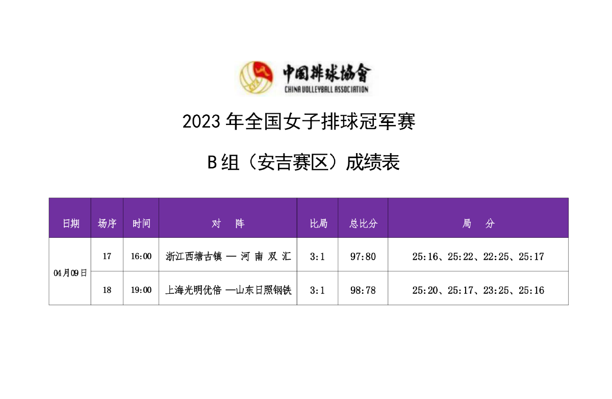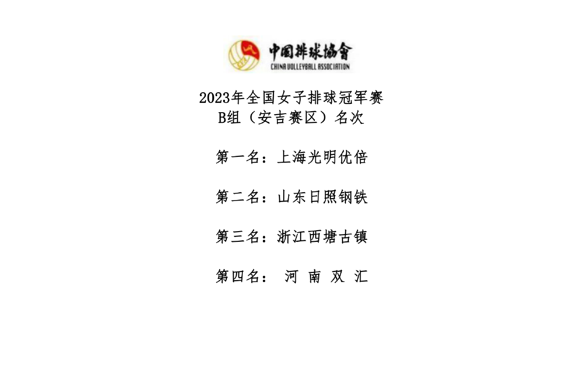 2023年全国女排冠军赛第一站B组(安吉赛区)5号公告