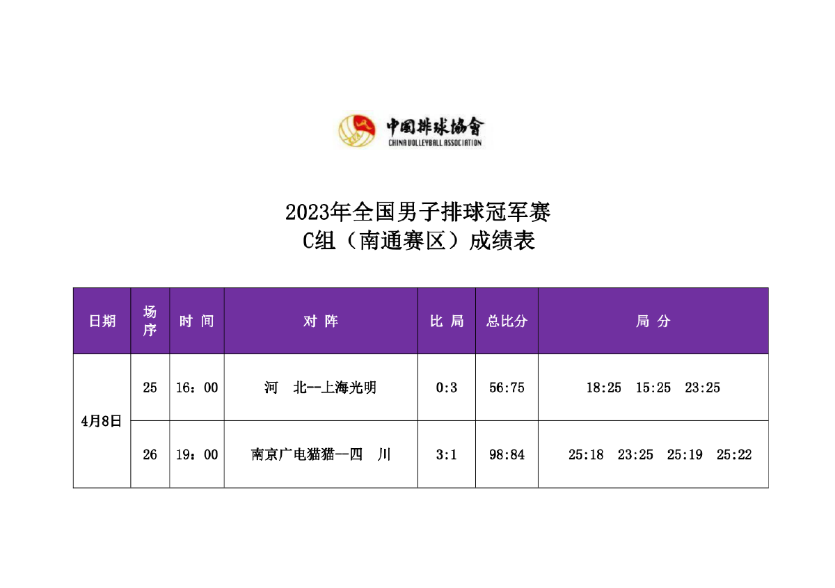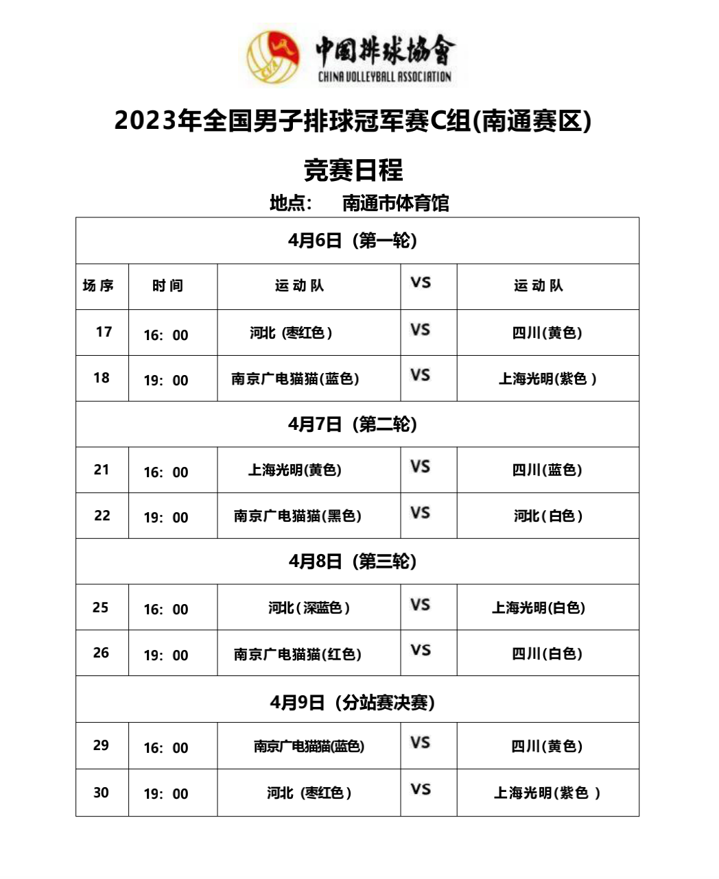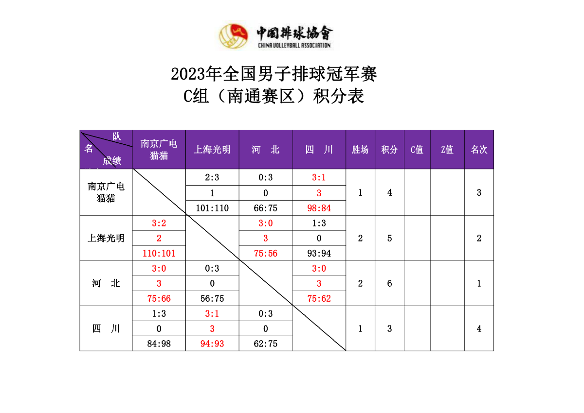 2023年全国男排冠军赛第二站C组和D组4号公告