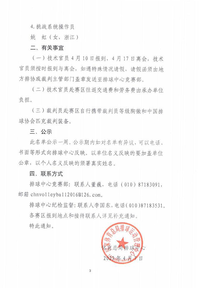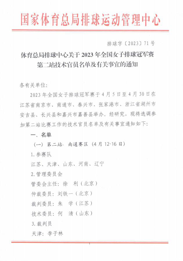 关于2023全国女排冠军赛第二站技术官员及有关事宜的通知