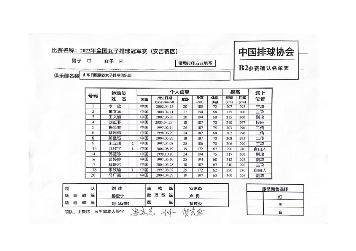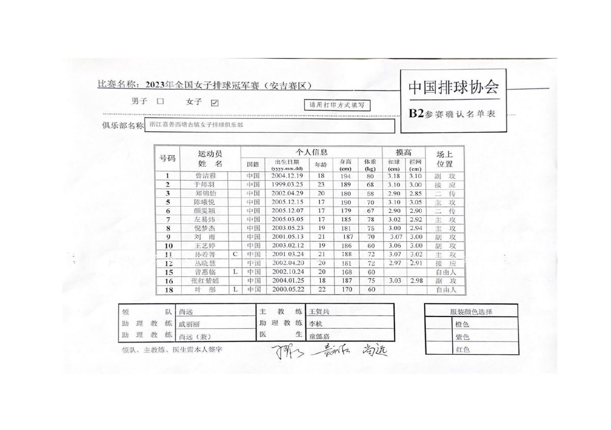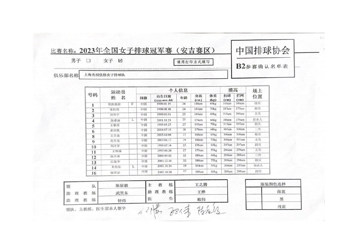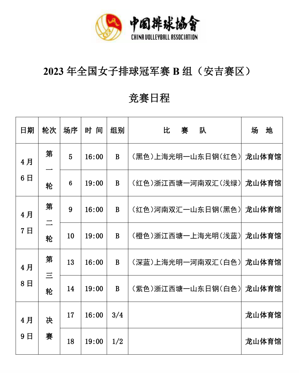 2023年全国女排冠军赛第一站B组(安吉赛区)1号公告