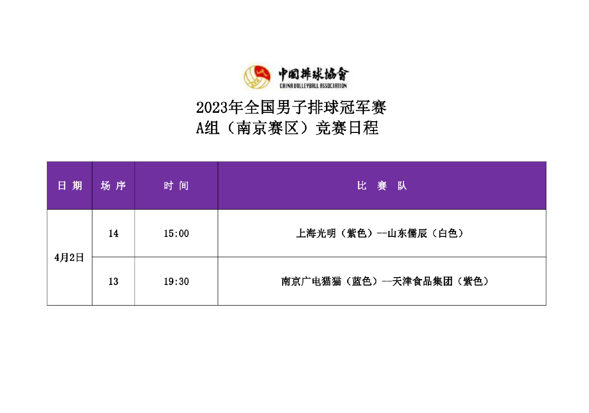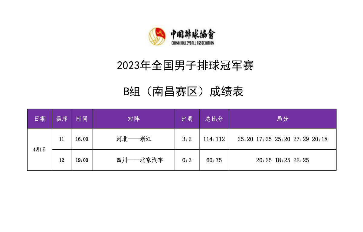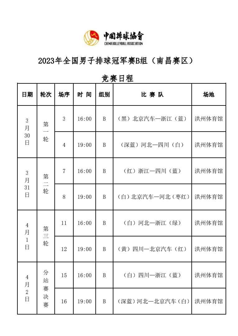 2023年全国男排冠军赛第一站A组和B组4号公告
