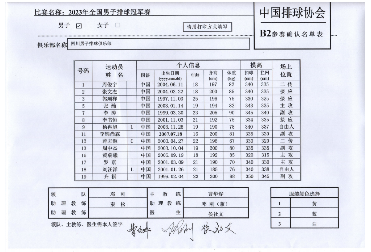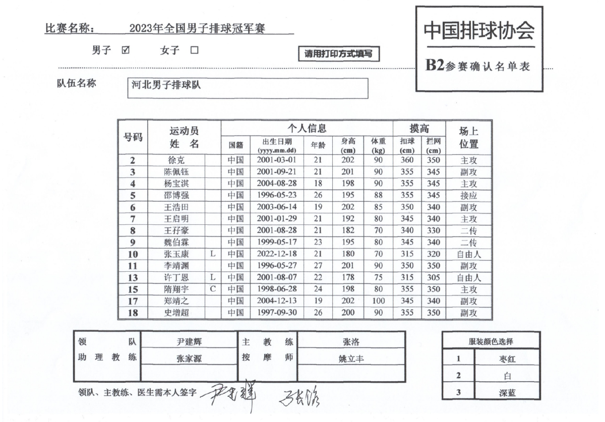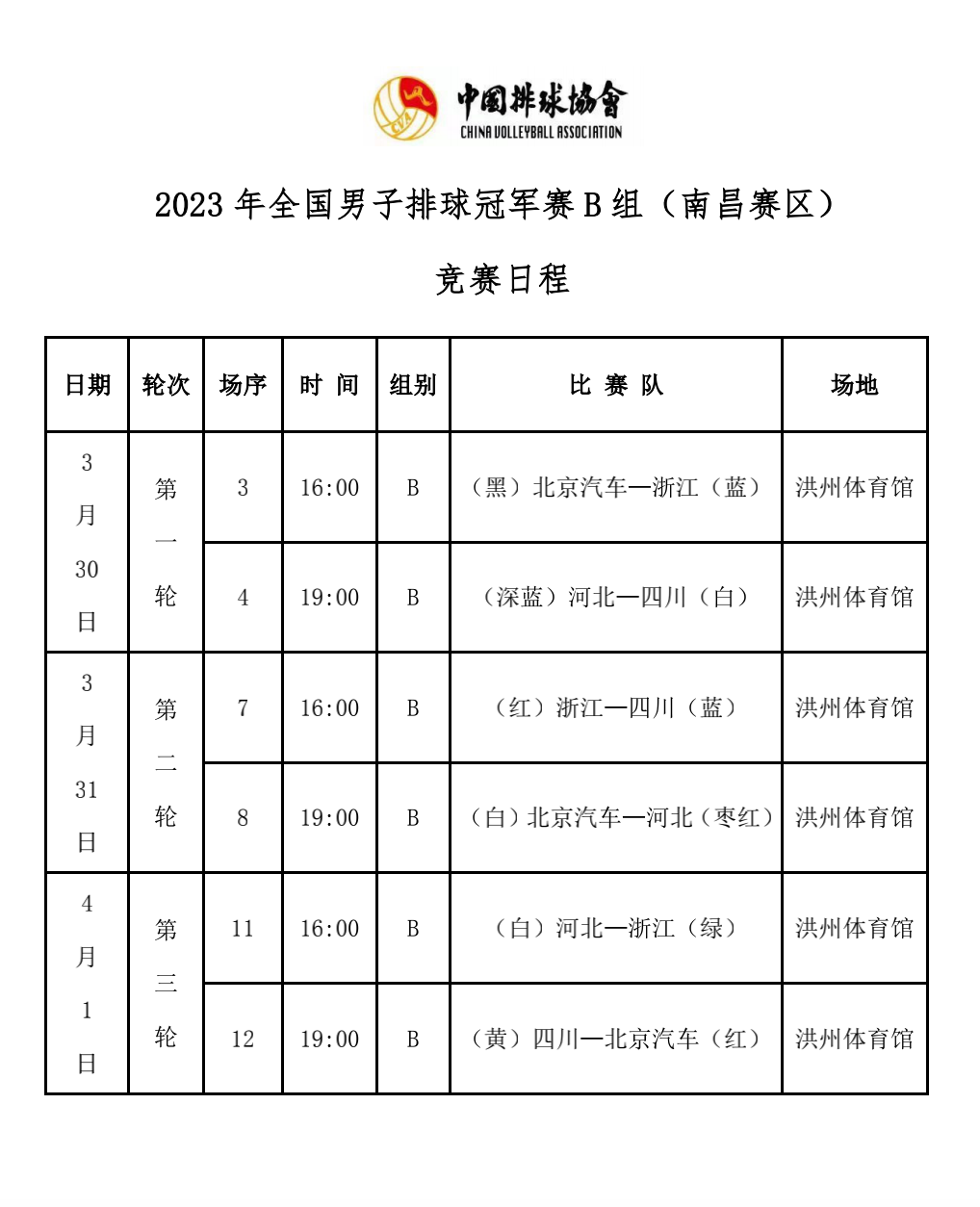 2023年全国男排冠军赛第一站B组(南昌赛区)1号公告