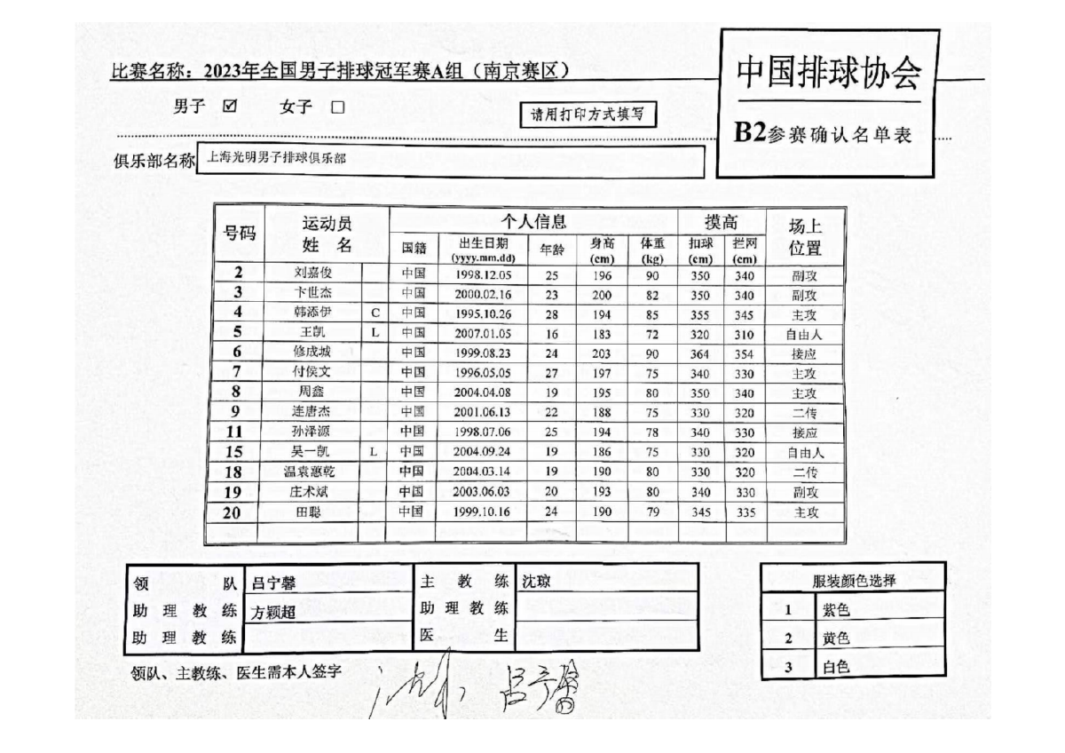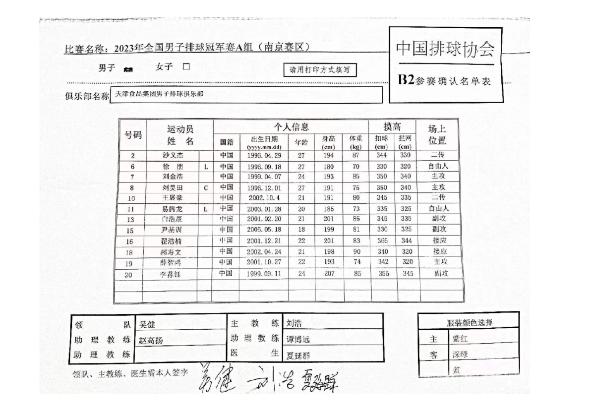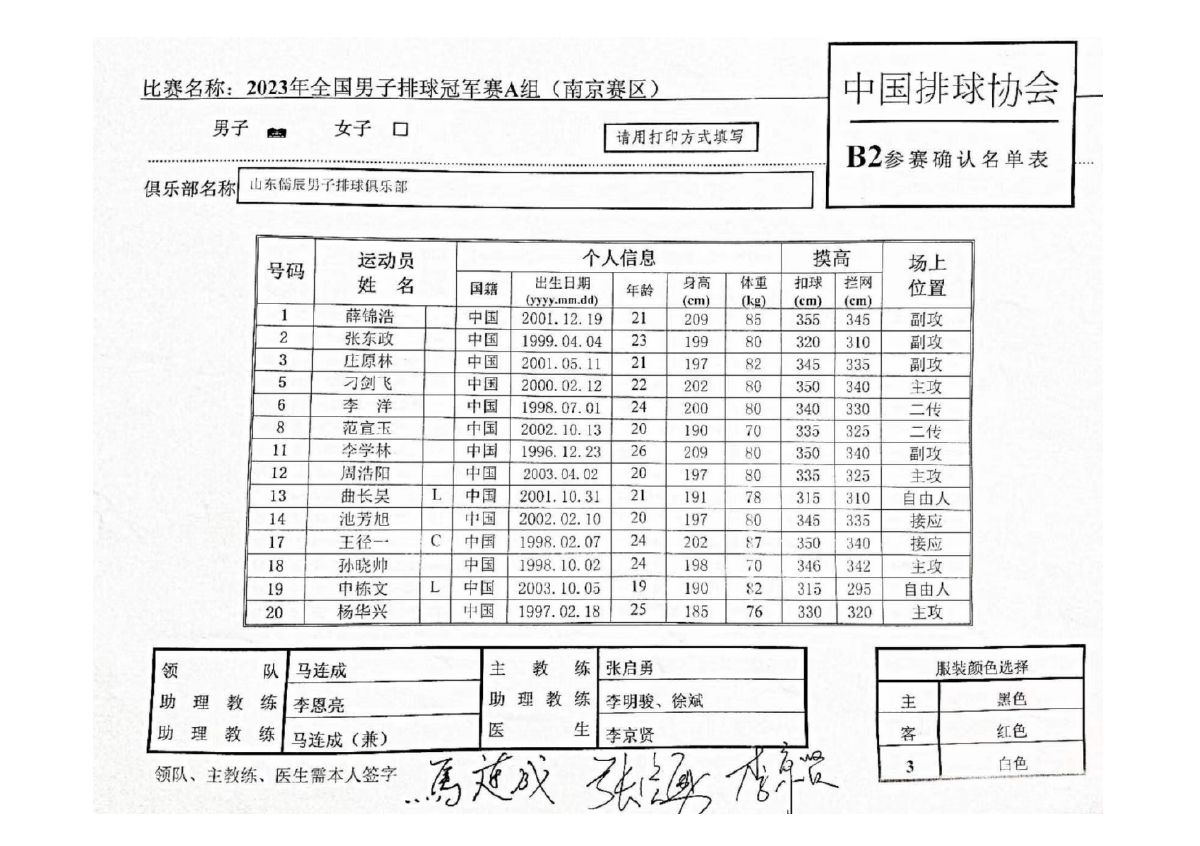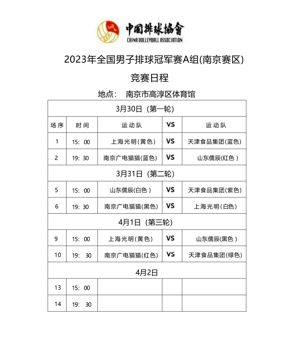 2023年全国男排冠军赛第一站A组(南京赛区)1号公告