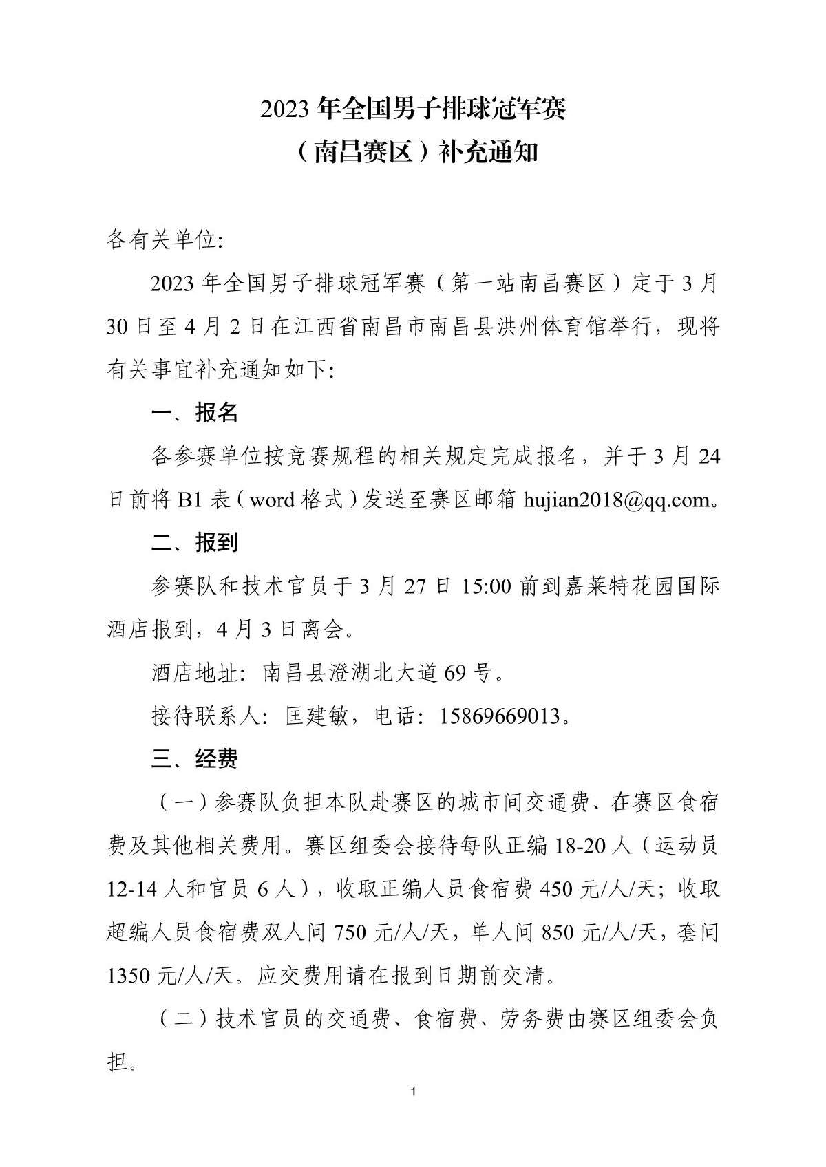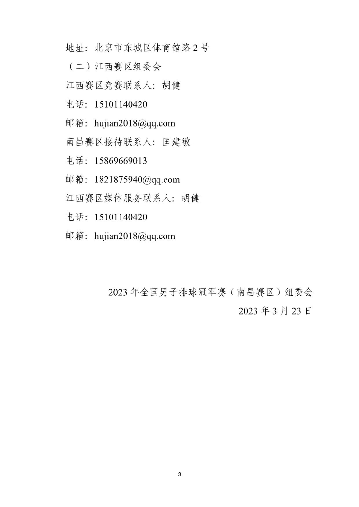 2023年全国男子排球冠军赛(南昌赛区)补充通知