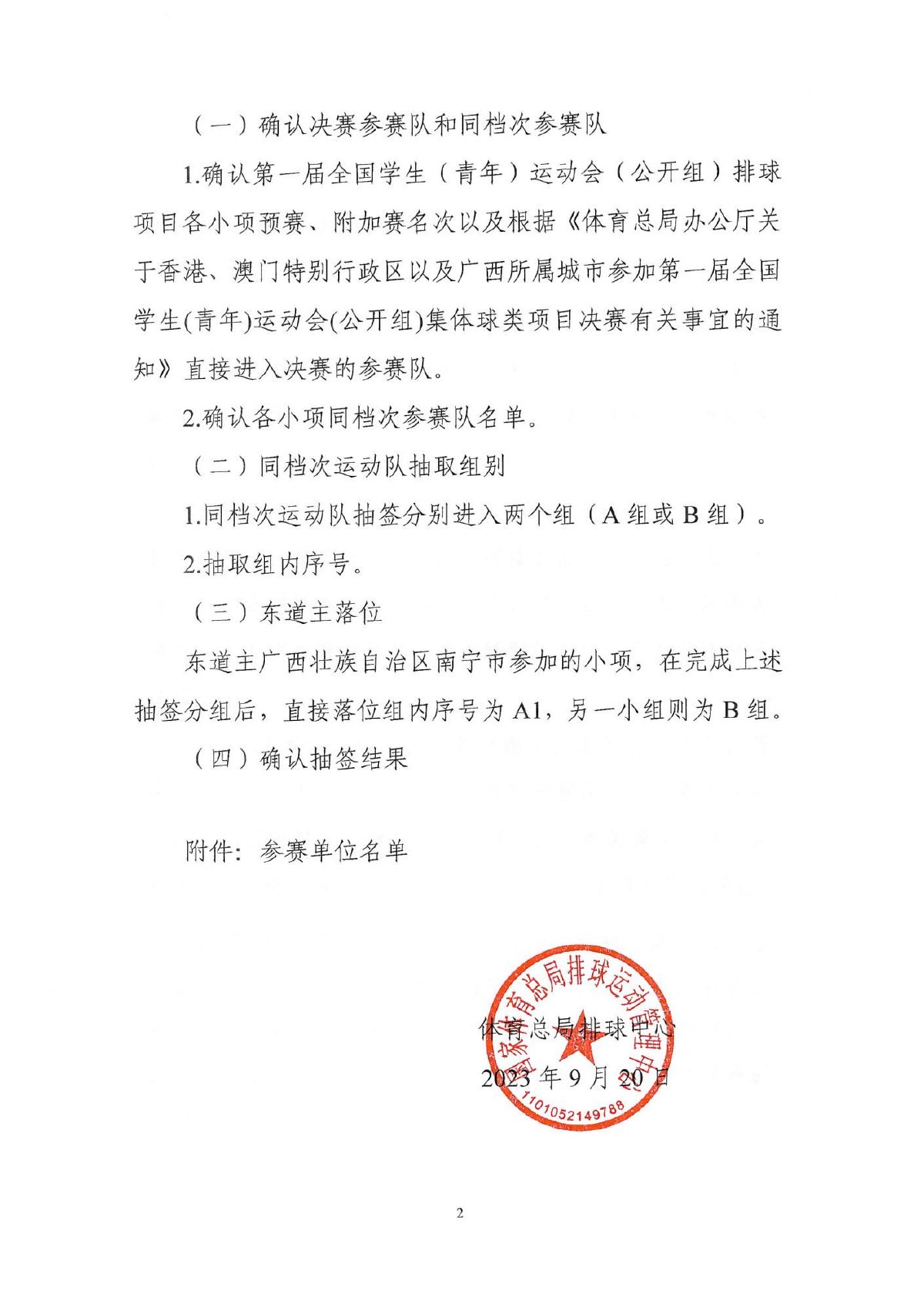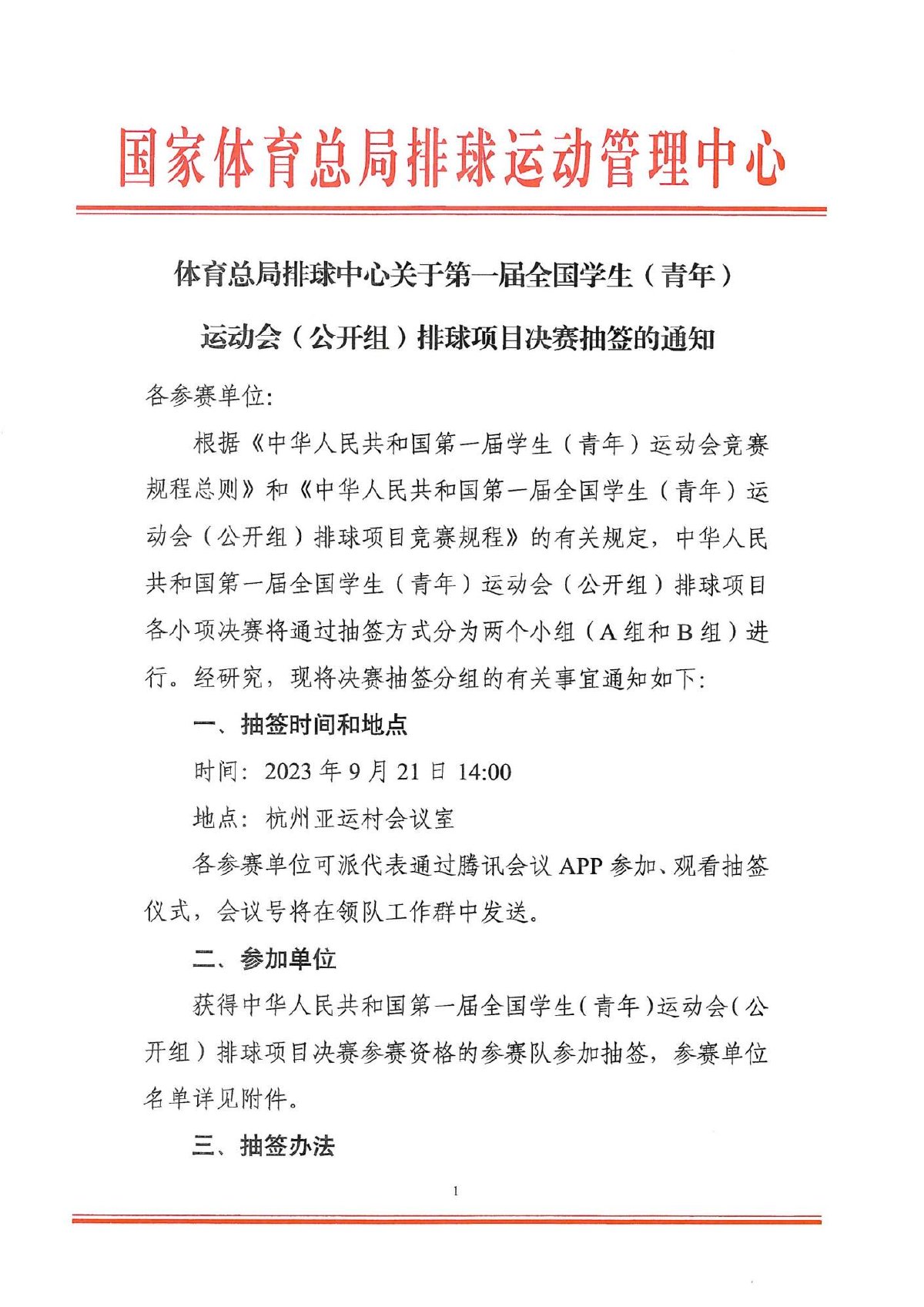 关于第一届青运会(公开组)排球项目决赛抽签的通知