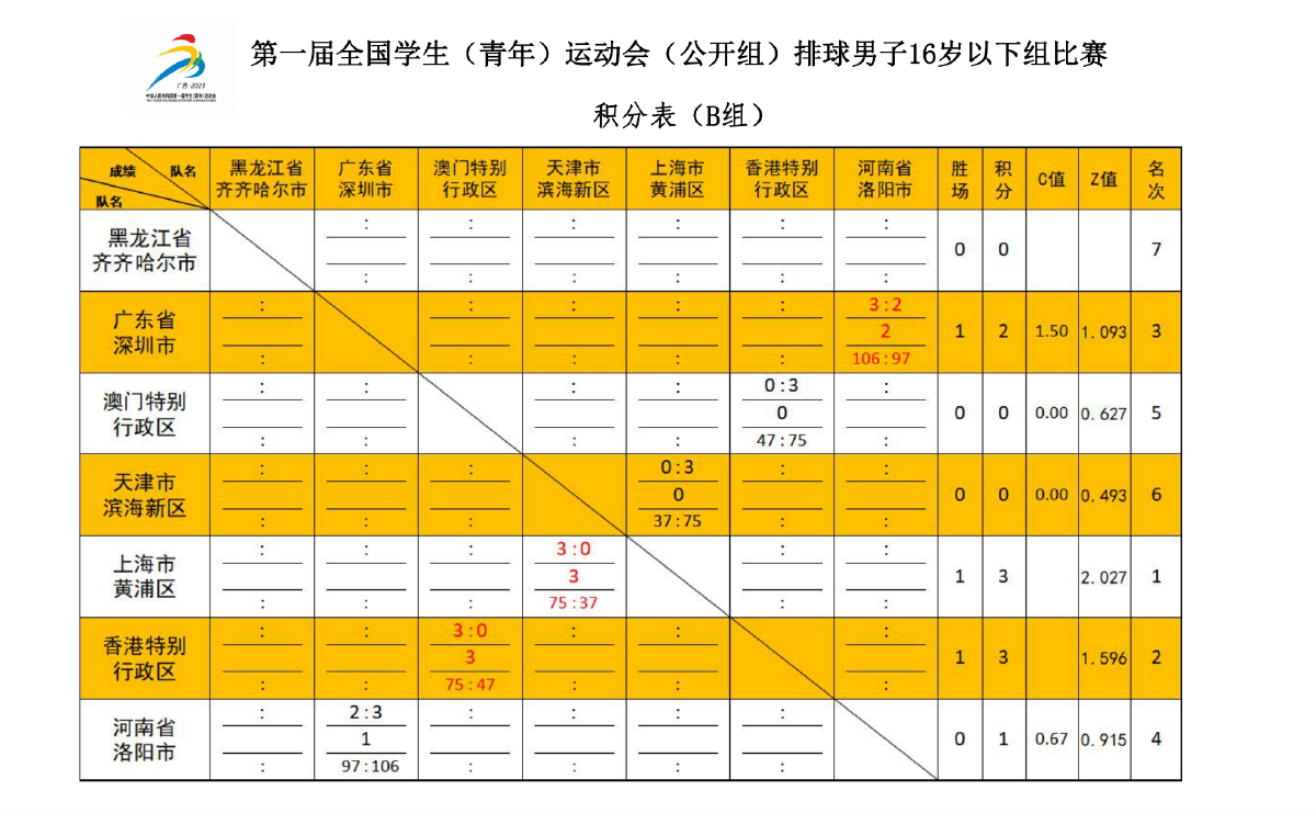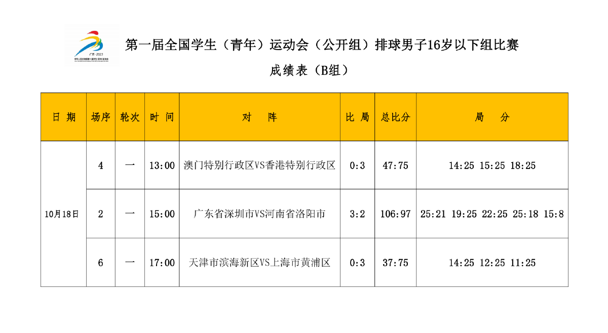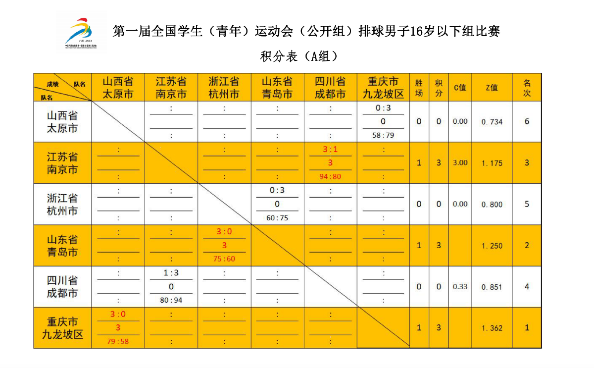 第一届全国学生(青年)运动会(公开组)排球男子16岁以下组比赛2号公告