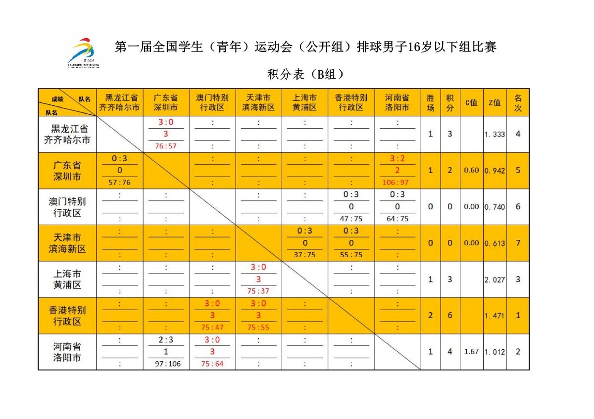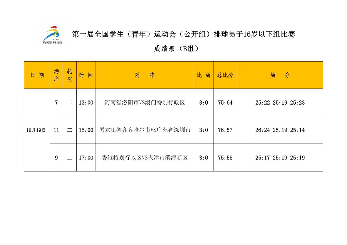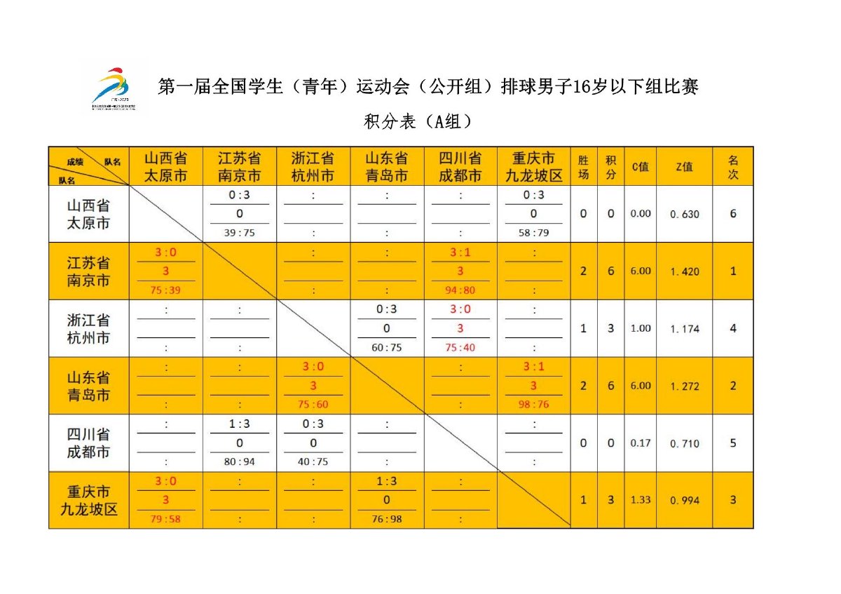 第一届全国学生(青年)运动会(公开组)排球男子16岁以下组比赛3号公告