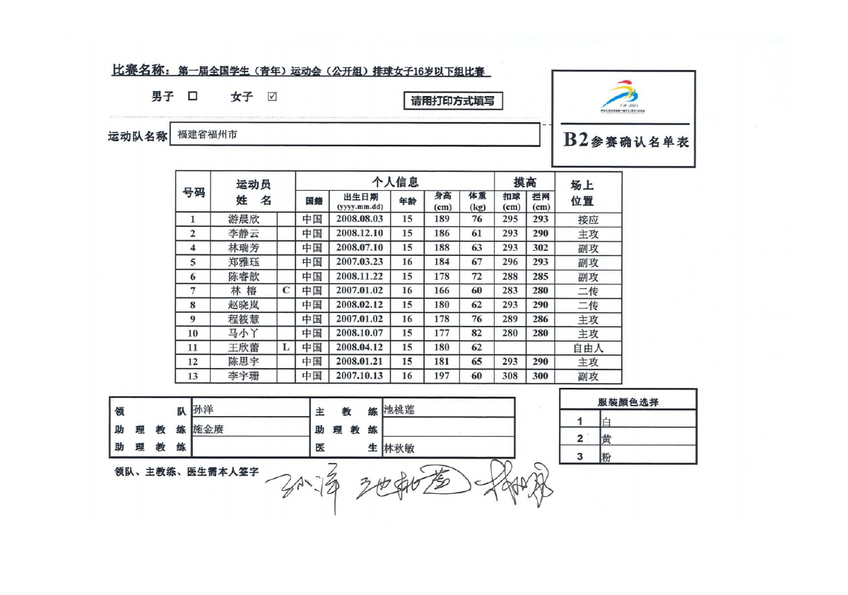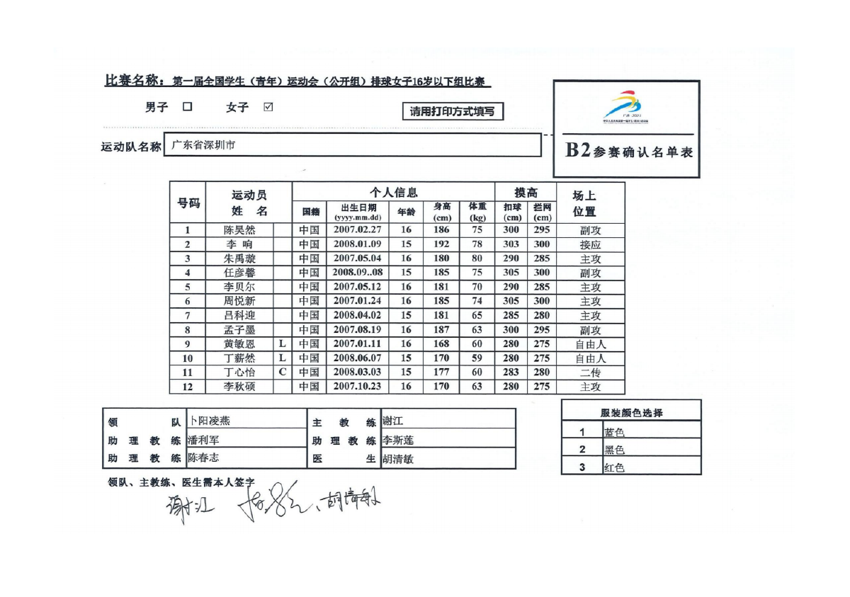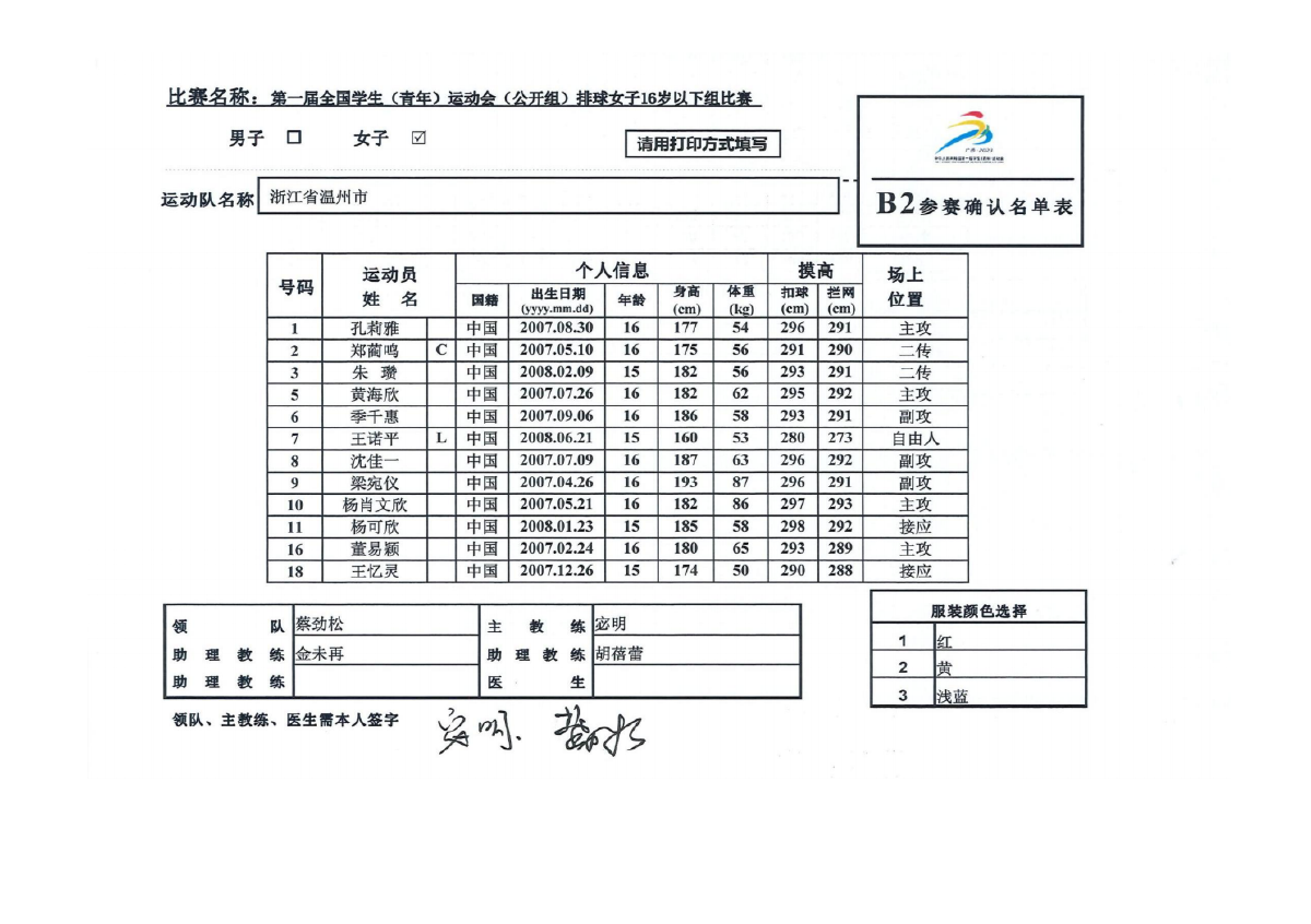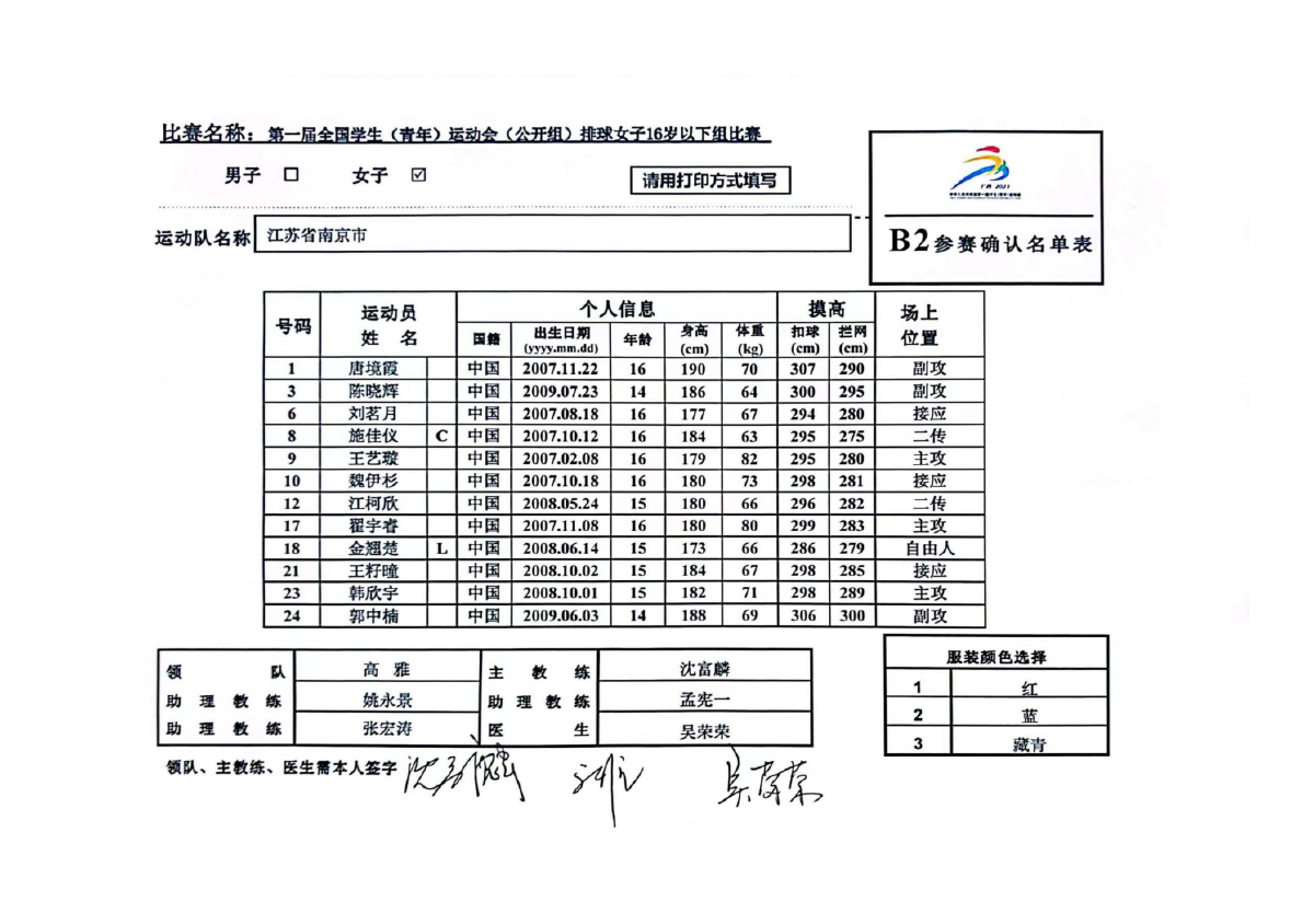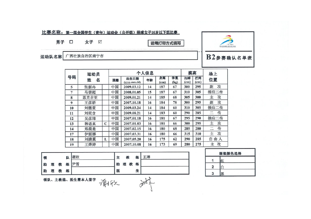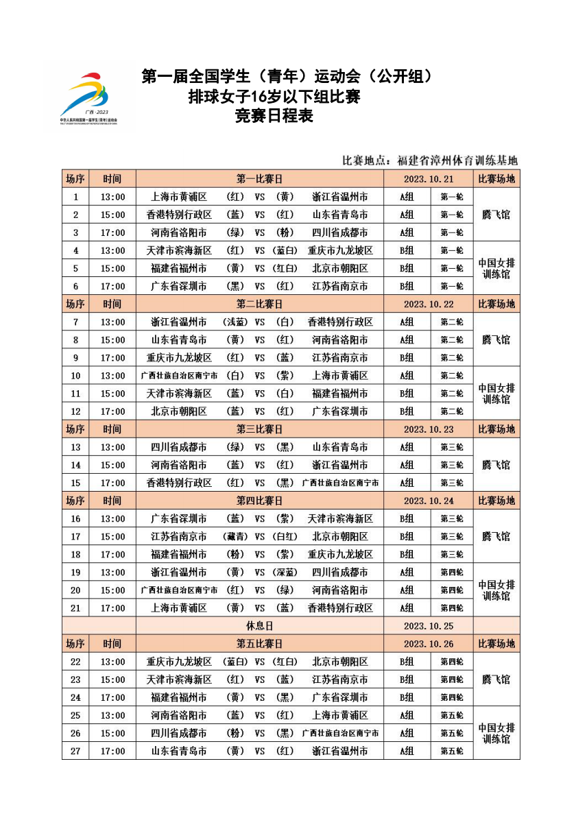 第一届全国学生(青年)运动会(公开组)排球女子16岁以下组比赛1号公告
