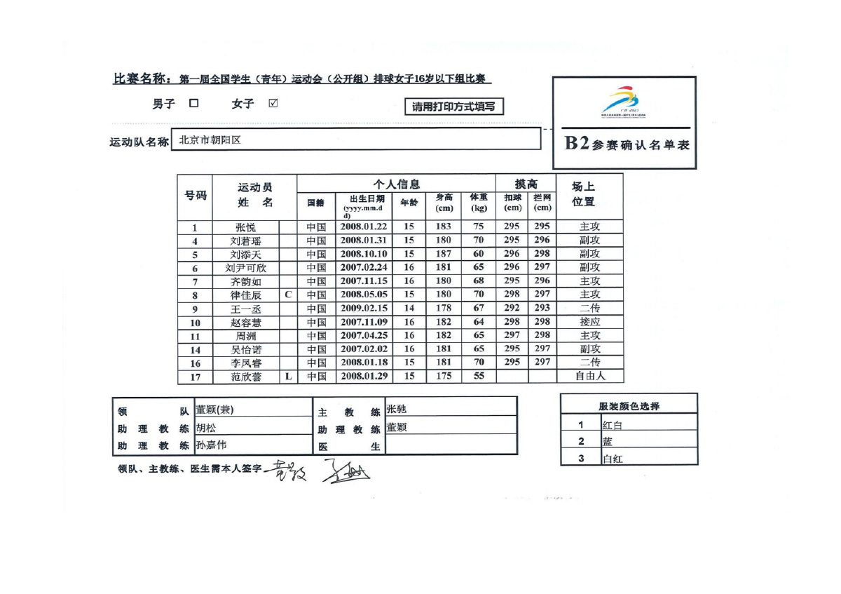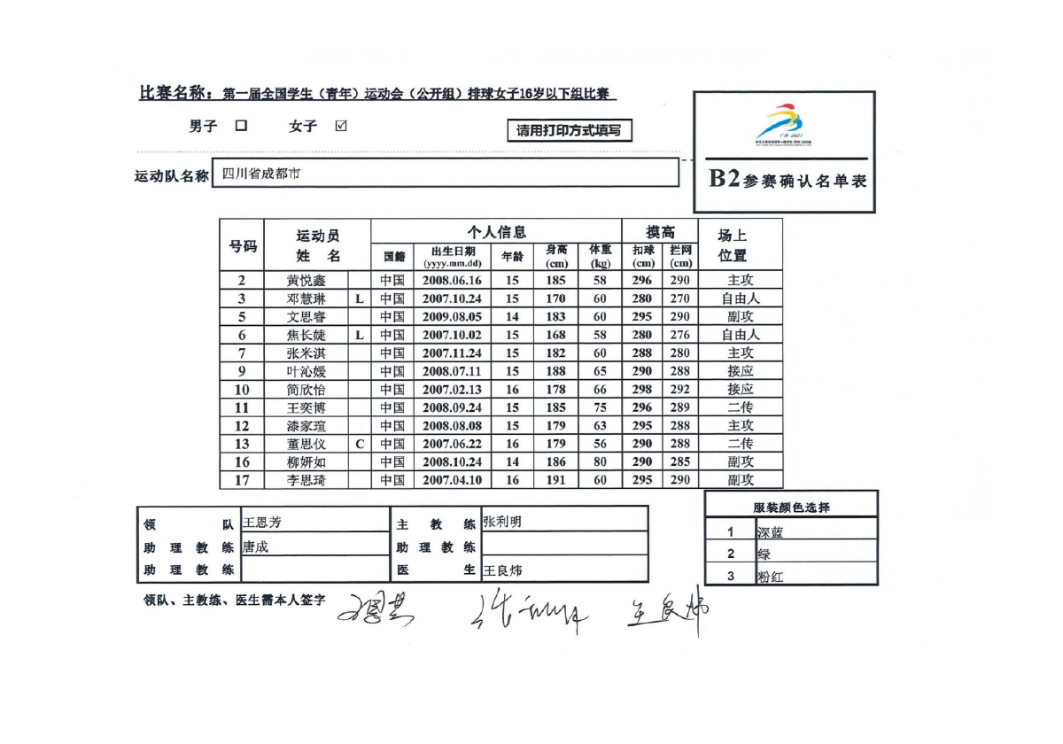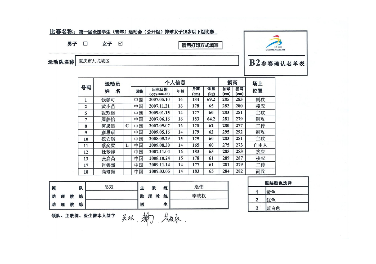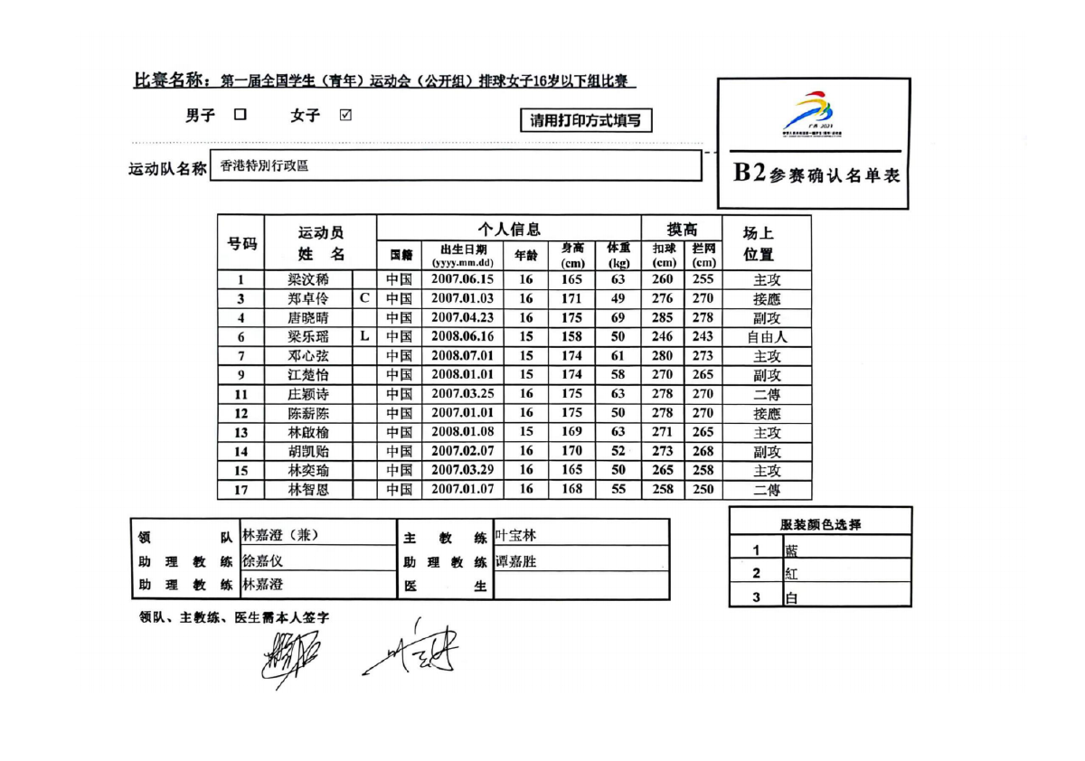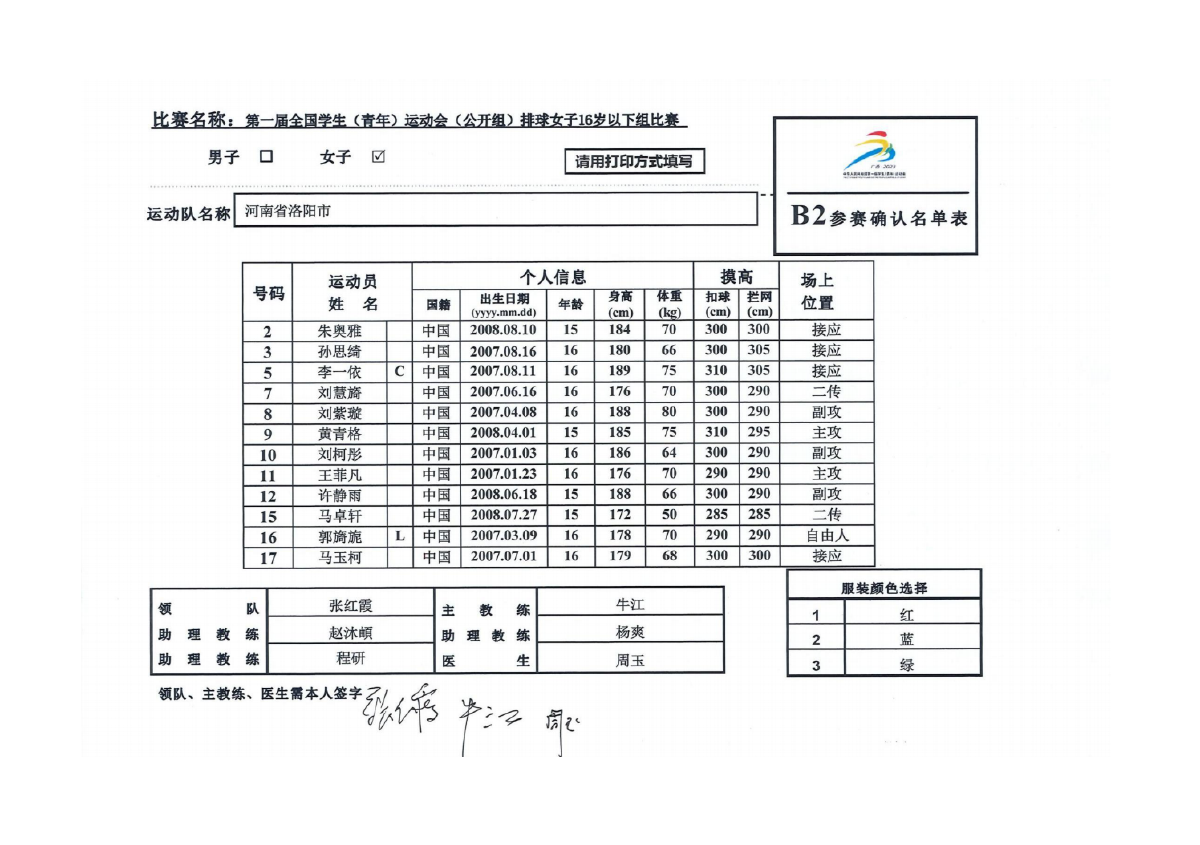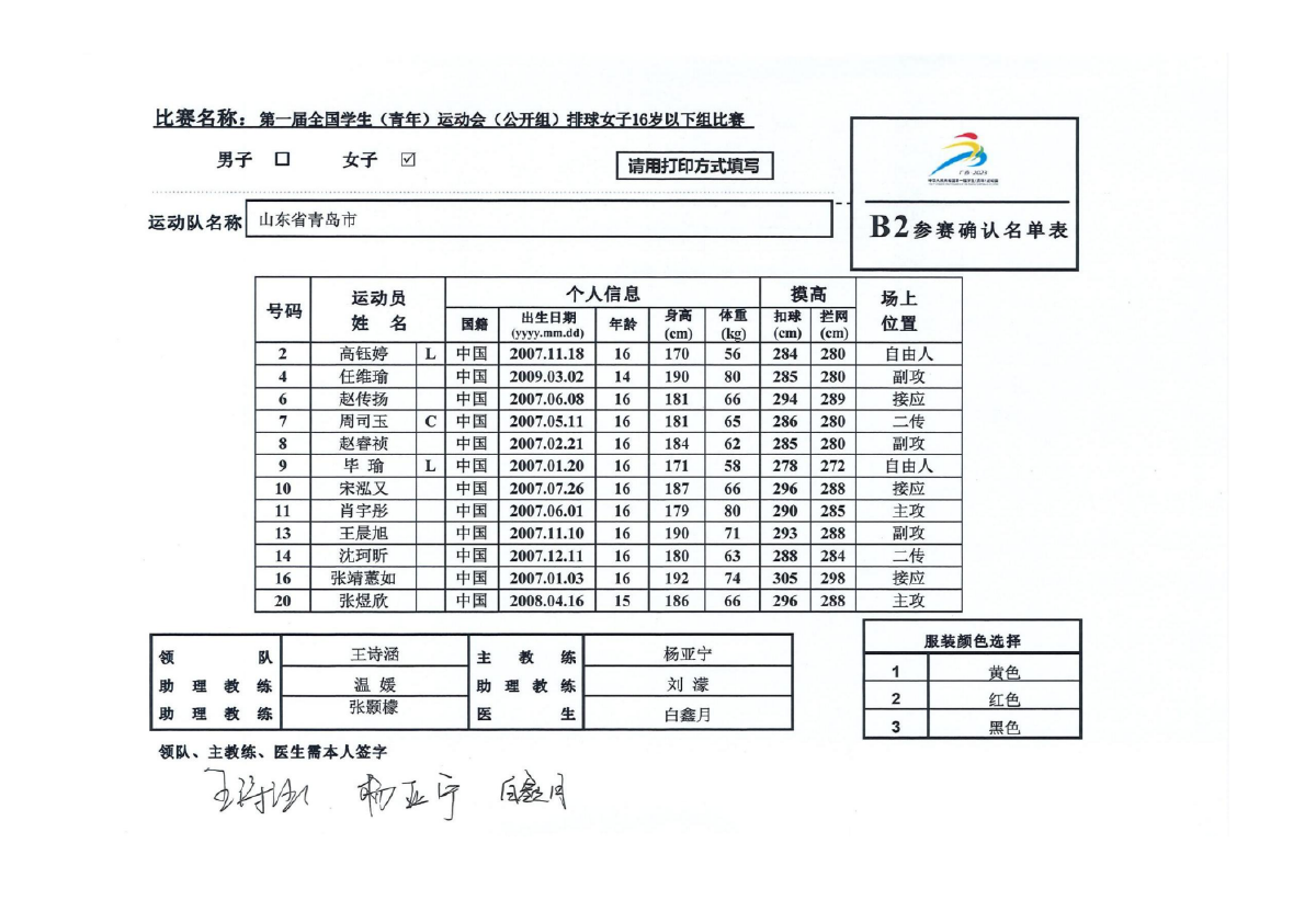第一届全国学生(青年)运动会(公开组)排球女子16岁以下组比赛1号公告