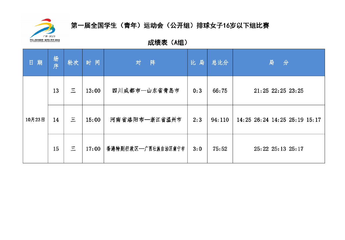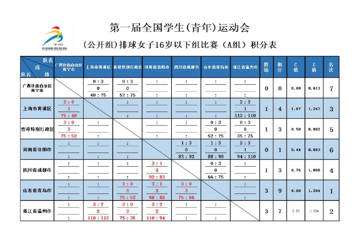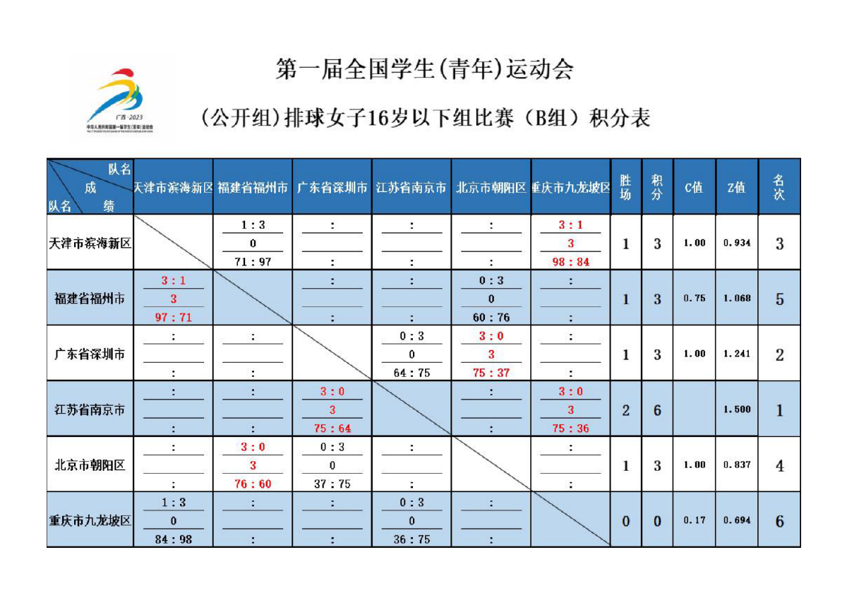 第一届全国学生(青年)运动会(公开组)排球女子16岁以下组比赛4号公告
