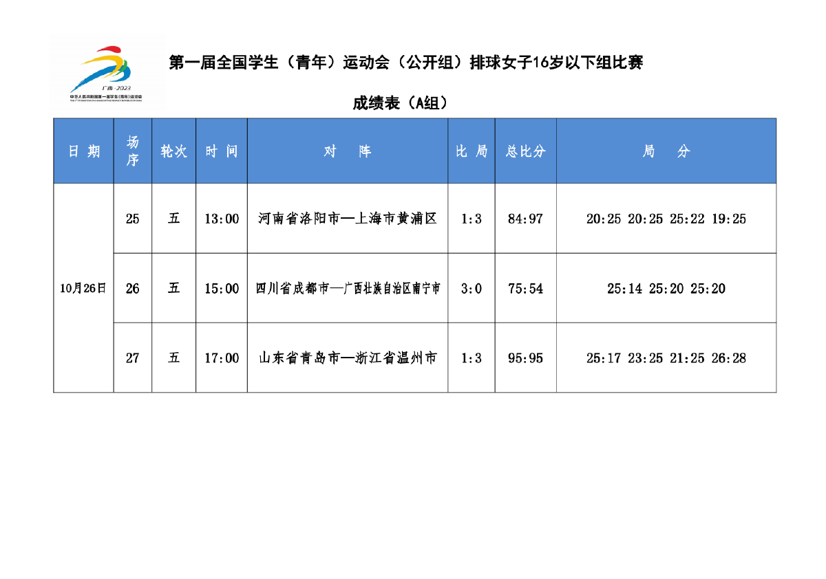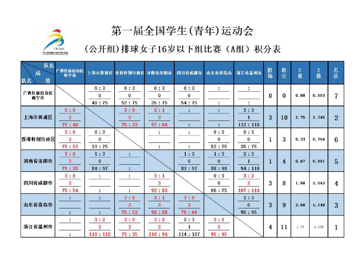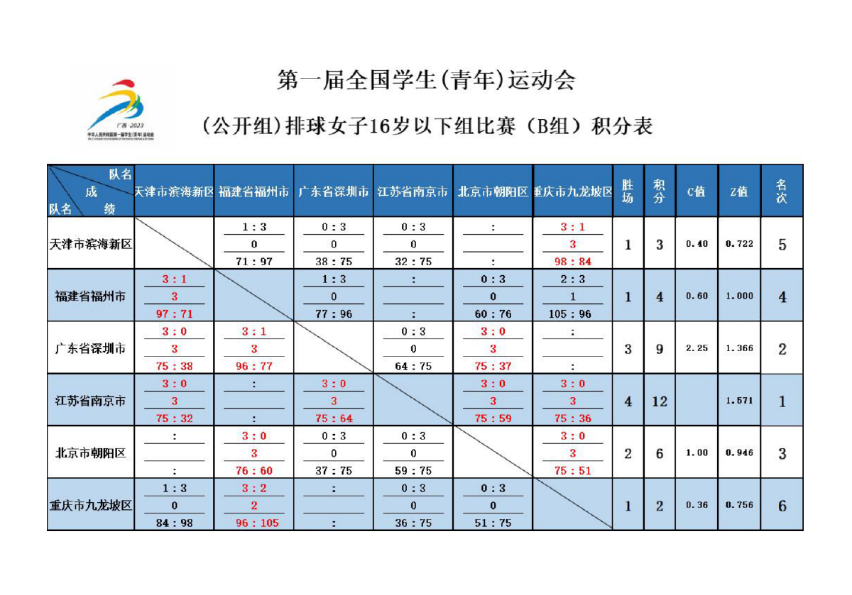 第一届全国学生(青年)运动会(公开组)排球女子16岁以下组比赛6号公告