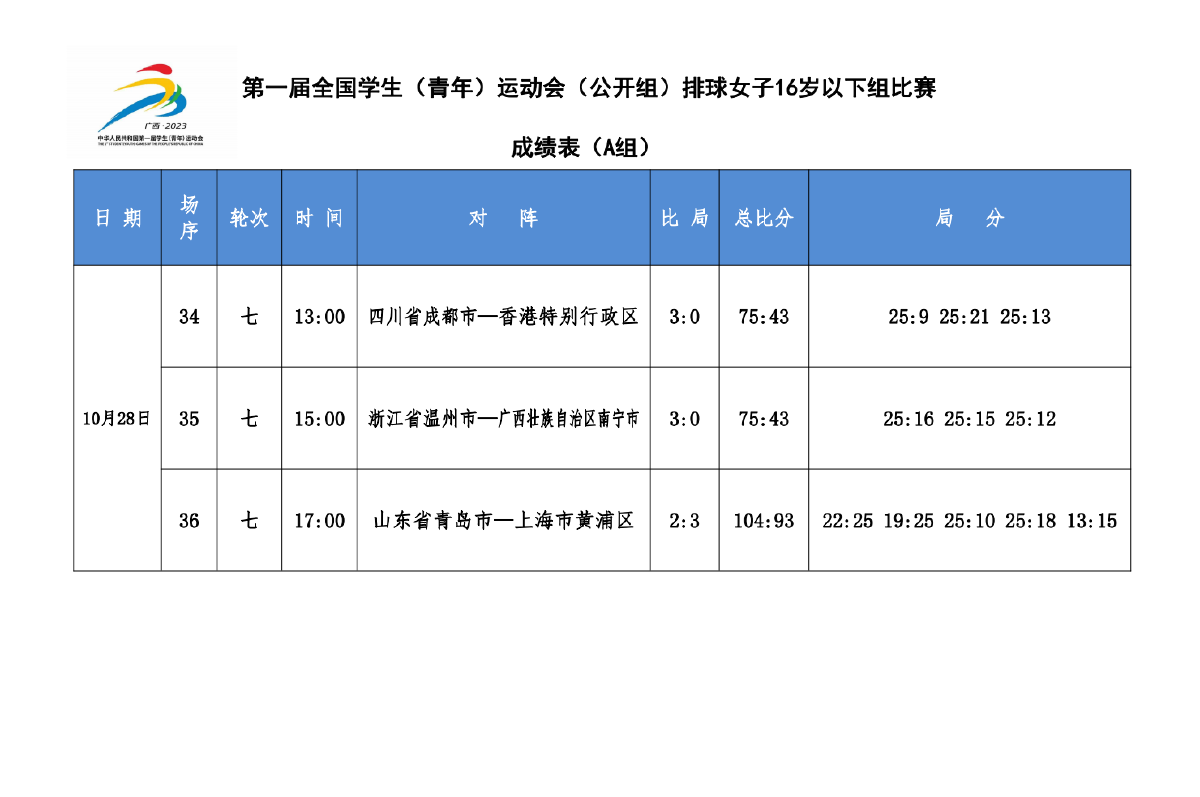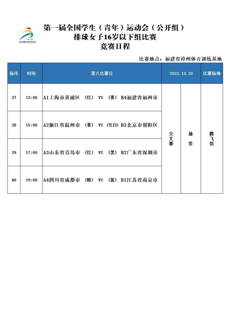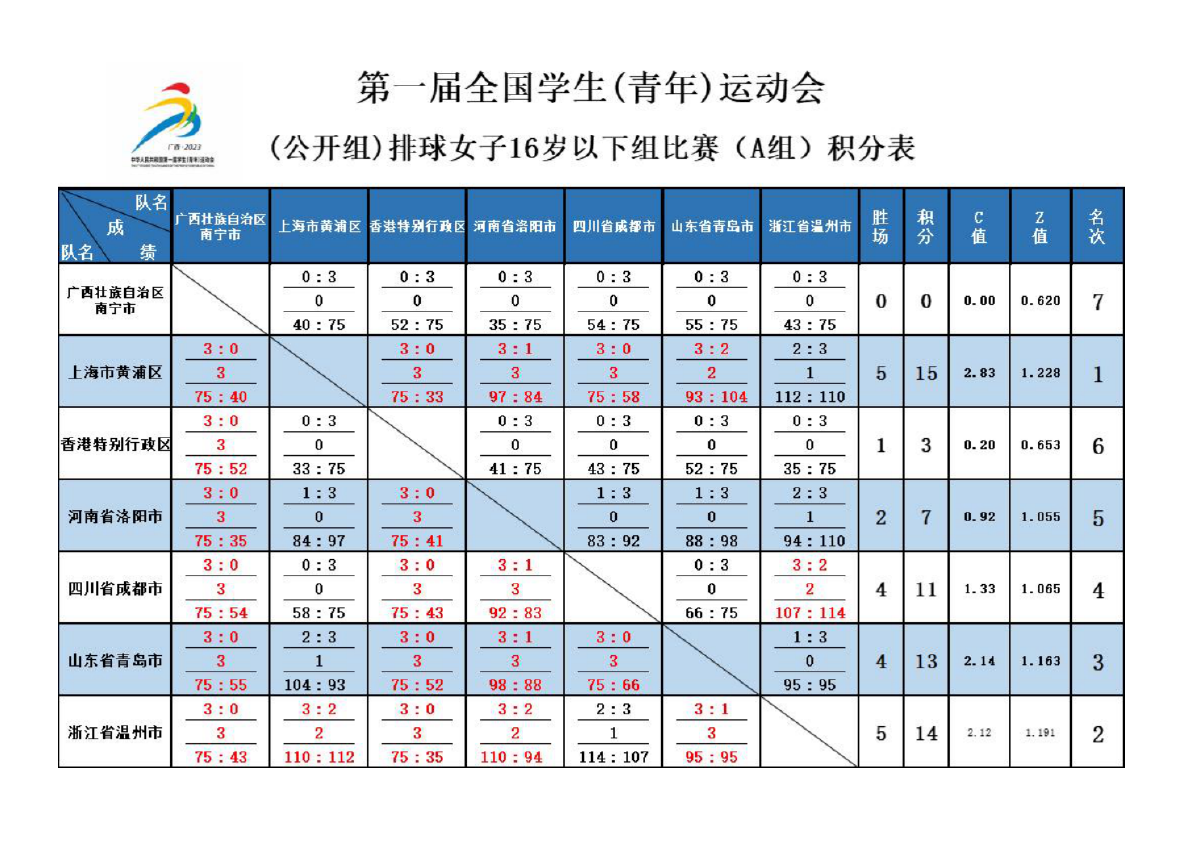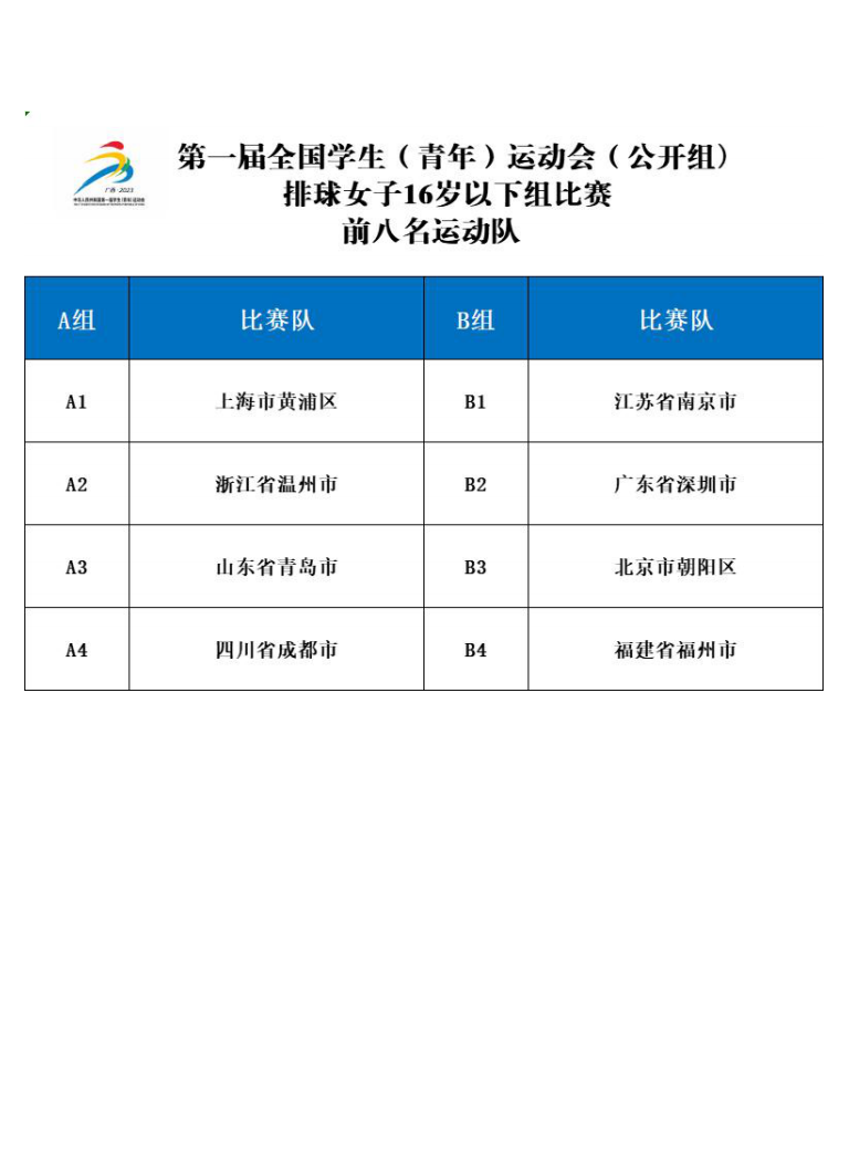 第一届全国学生(青年)运动会(公开组)排球女子16岁以下组比赛8号公告