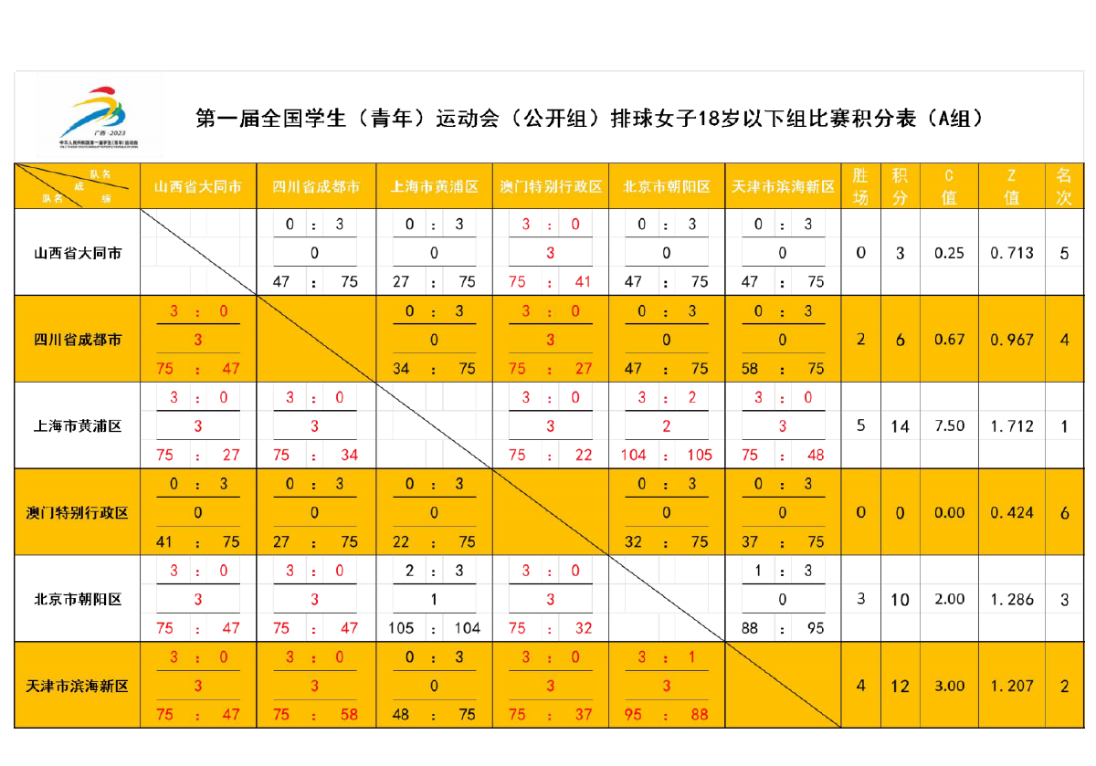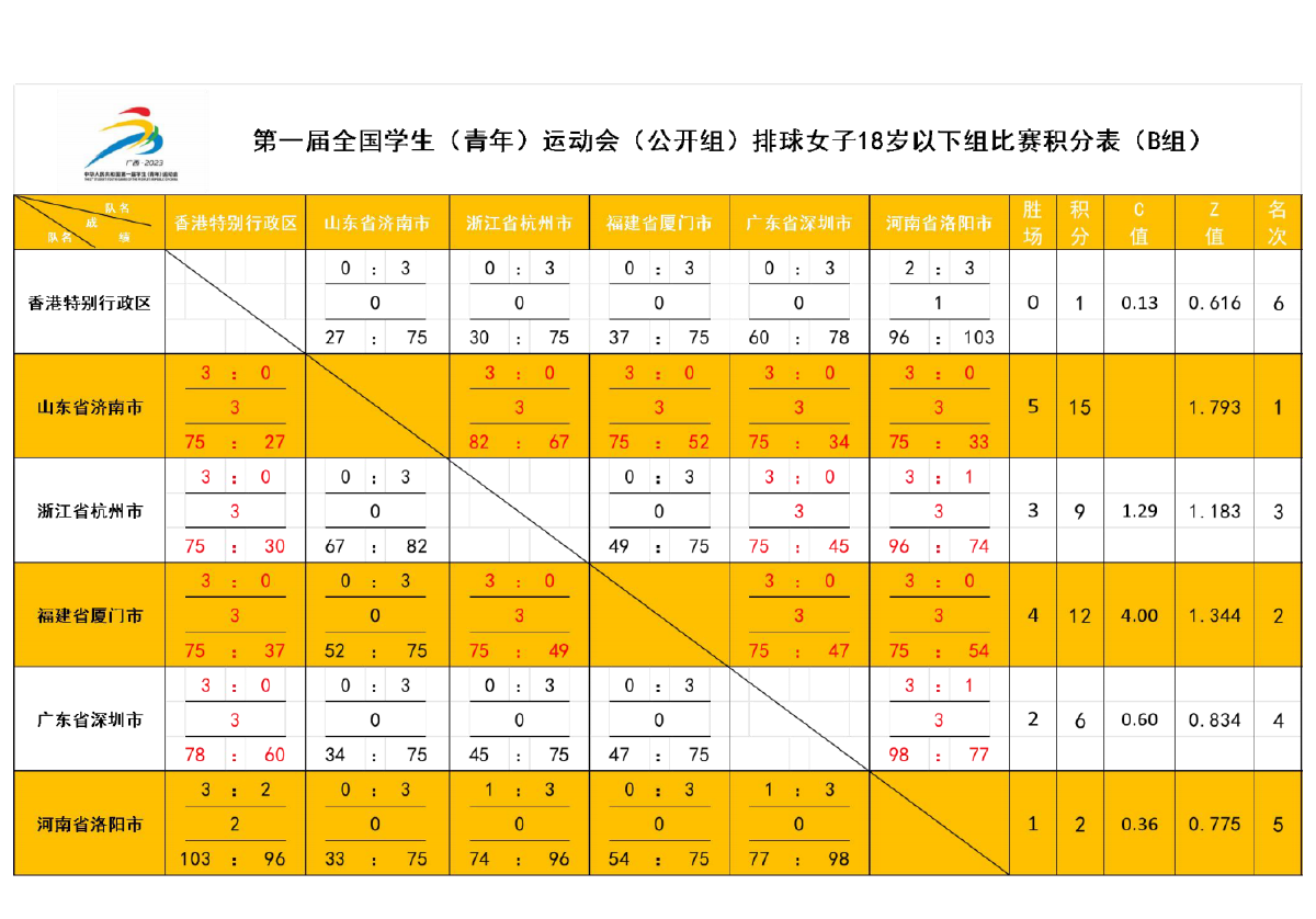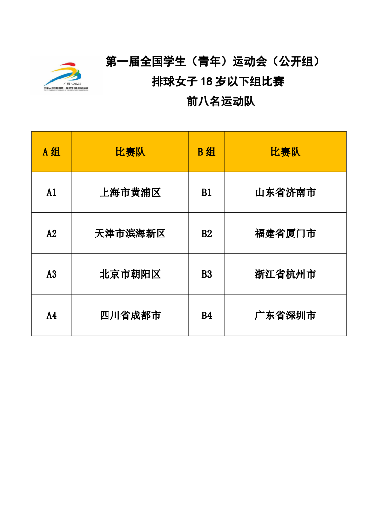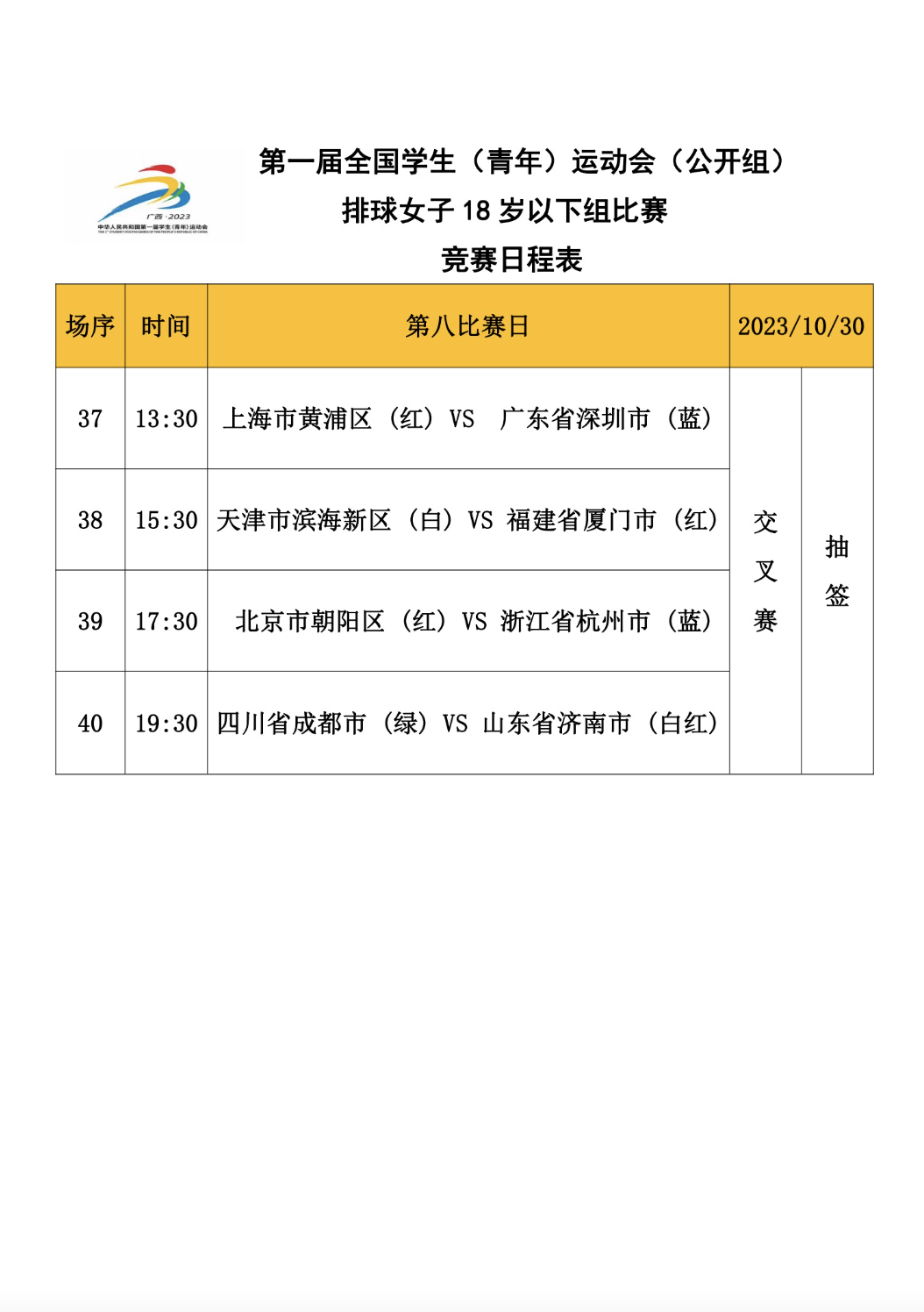 第一届全国学生(青年)运动会(公开组)排球女子18岁以下组比赛8号公告