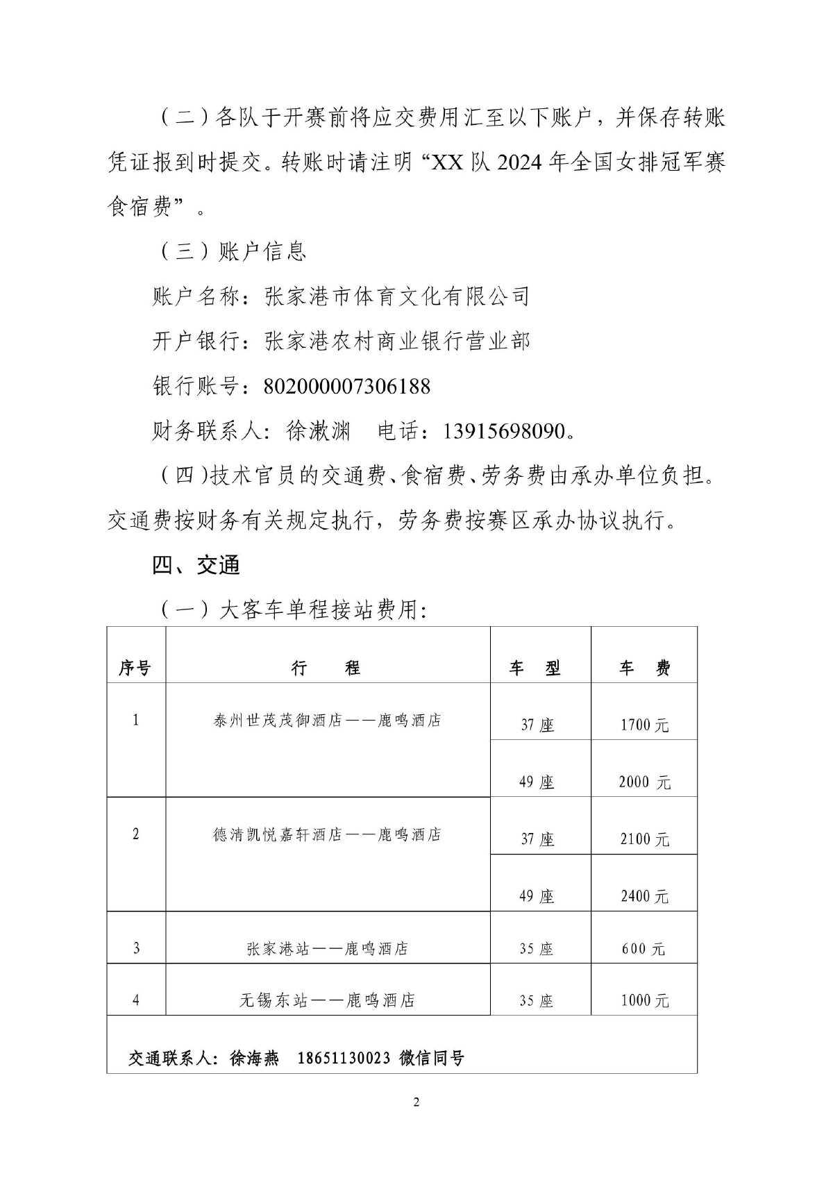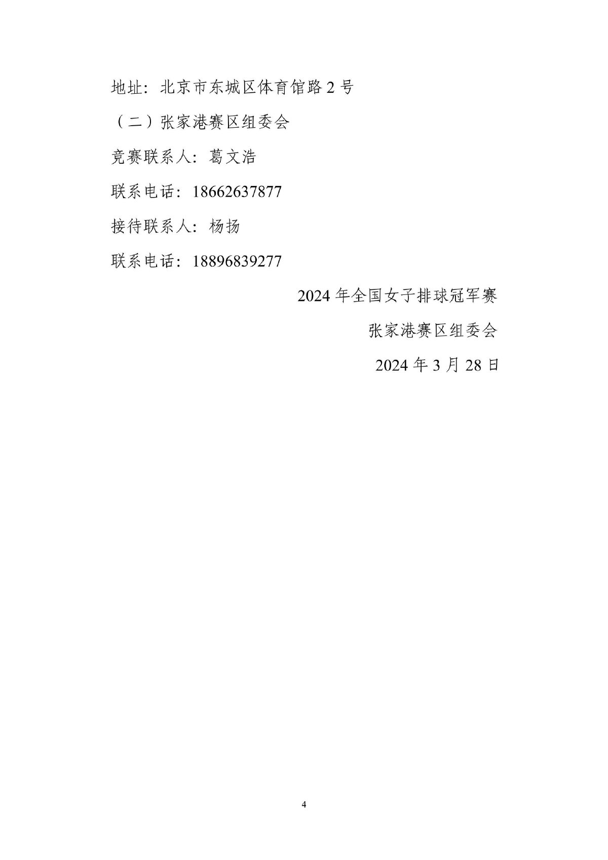 2024年全国女子排球冠军赛总决赛(张家港赛区)补充通知