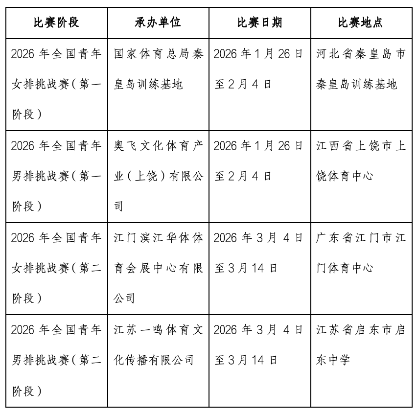 关于举办2026年全国青年排球挑战赛及相关事宜的通知