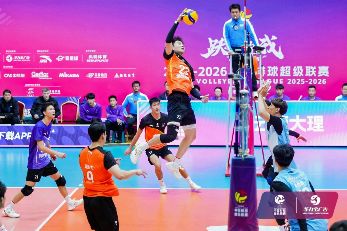 2026年1月4日,2025-2026中国男子排球超级联赛常规赛B级第七轮第19场比赛在大理州体育中心体育馆结束。云南滇池学院男排主场3比0战胜河南清明上河园男排,三局比分为25比19、25比22、25比20。