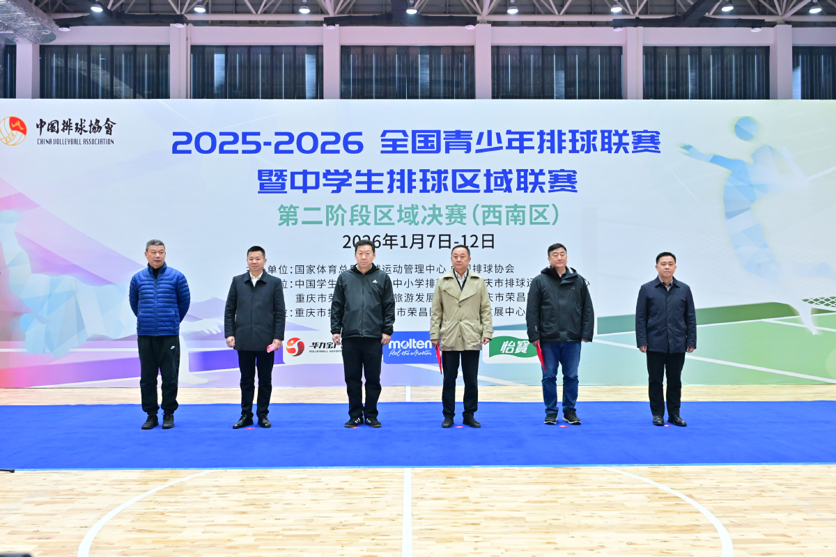 1月7日,2025-2026全国青少年排球联赛暨中学生排球区域联赛第二阶段区域决赛(西南区)在重庆城市管理职业学院荣昌校区体育馆开赛。本次赛事由国家体育总局排球运动管理中心、中国排球协会主办,中国学生体育联合会中小学排球分会、重庆市排球运动管理中心、重庆市荣昌区文化和旅游发展委员会、重庆市荣昌区体育局承办。
