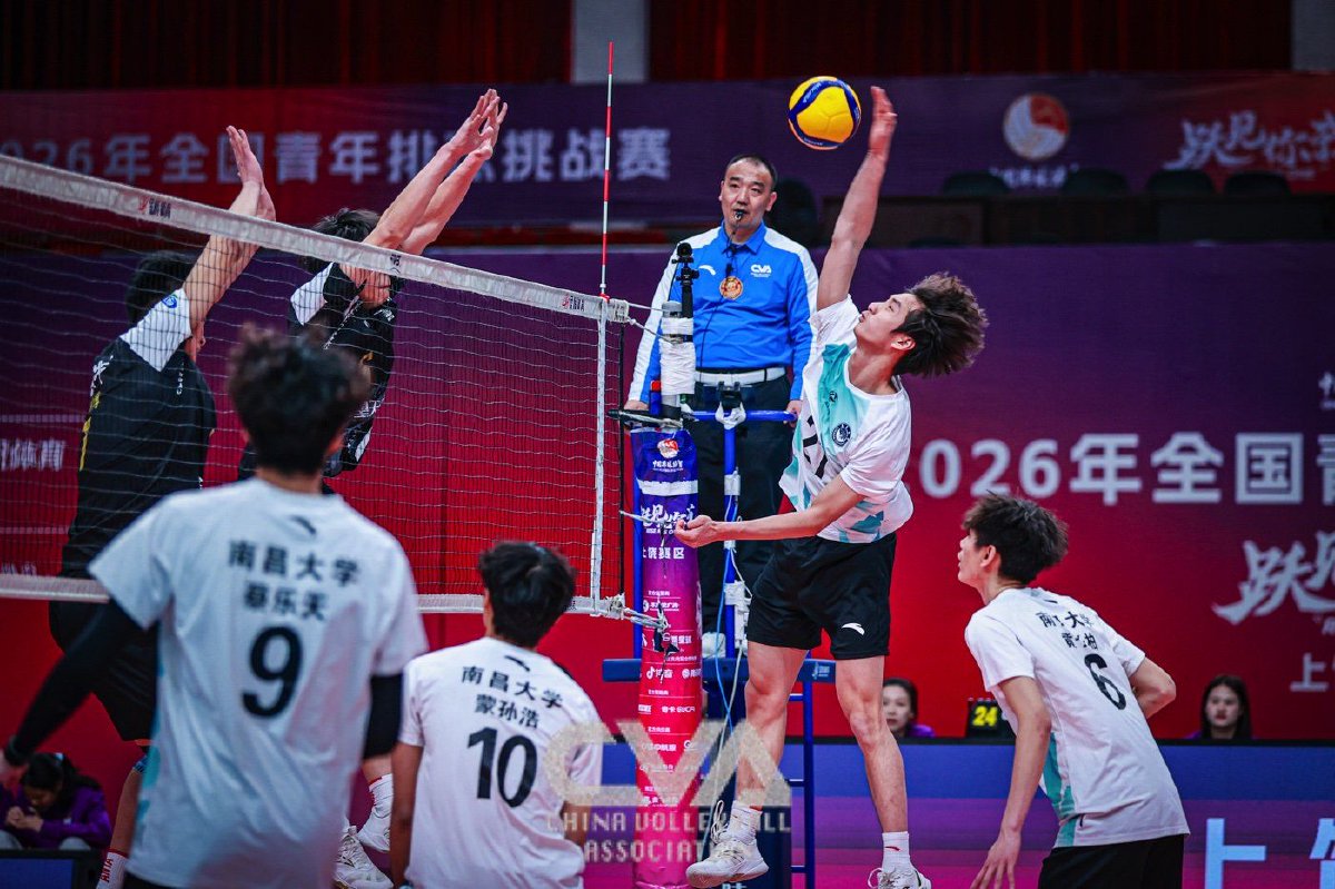 2月3日晚,2026年全国青年排球挑战赛第一阶段排名赛结束第三轮的争夺。男子组,南昌大学和中山大学均直落三局击败各自对手,继续以不败战绩位居前两位。女子组,南京师范大学同样3比0胜出,以不败战绩领跑。