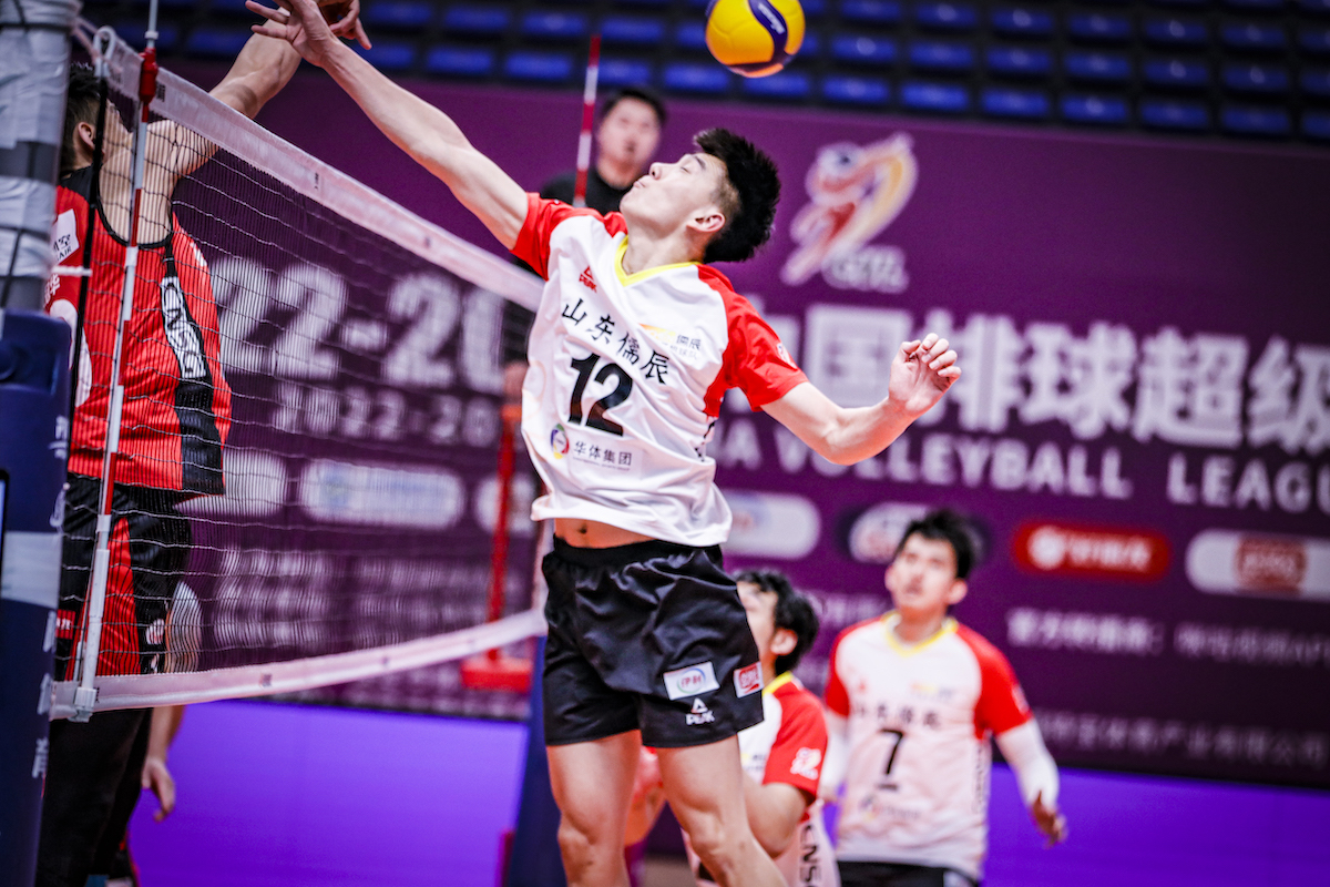 首局比赛上来,面对实力强劲的浙江队,山东队敢打敢拼,丝毫不落下风,从开局就一直保持着四分左右的领先优势。局末,山东队张东政发球直接得分,王径一轻吊得手,帮助球队继续扩大比分。随着王径一、张东政的一记双人拦网,山东队25-17先下一城。1-0暂时领先。