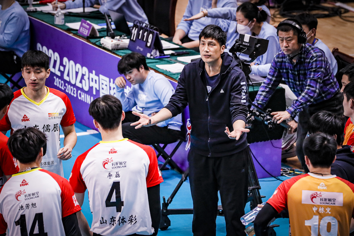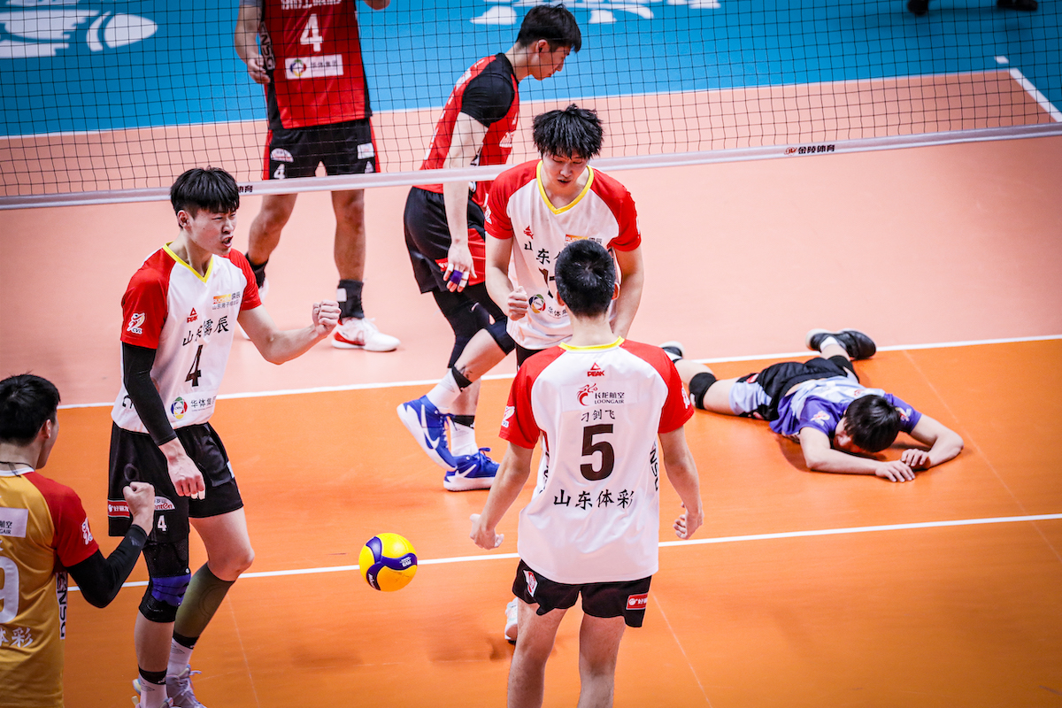 第四局,双方争夺比较激烈,比分也是交替领先,中局从15-15战至19平。局末关键阶段,浙江队自身失误增多,山东队抓住机会超出比分,22-19。随着李学林一个快攻得手,山东队25-22拿下第四局,顽强扳平比分,大比分2-2。