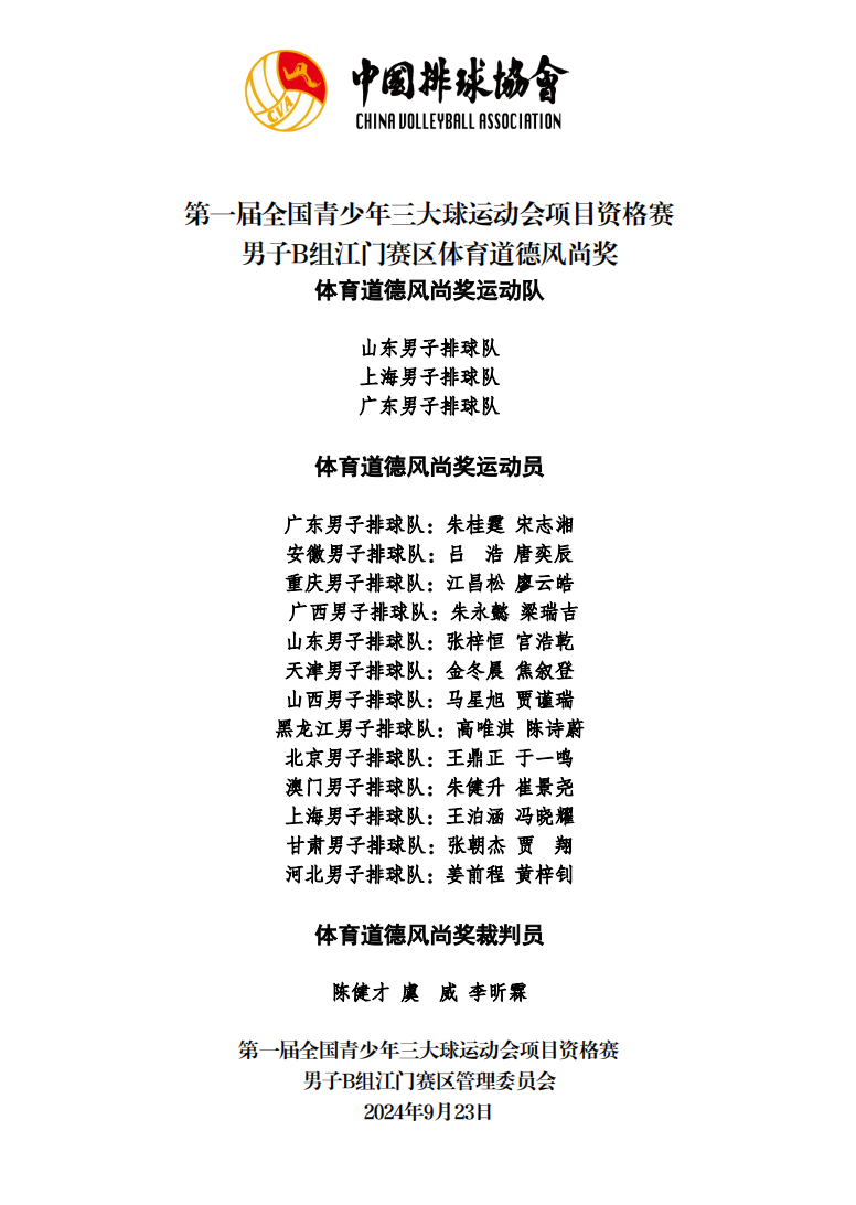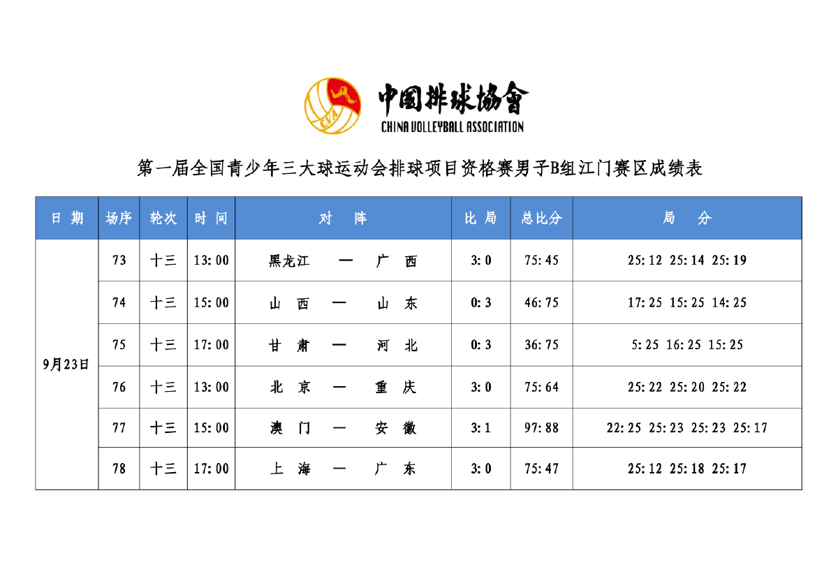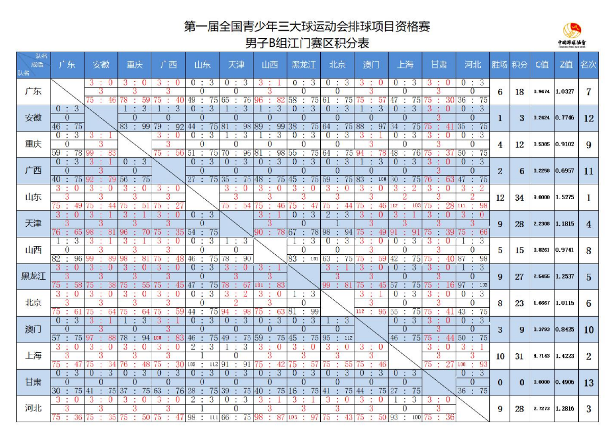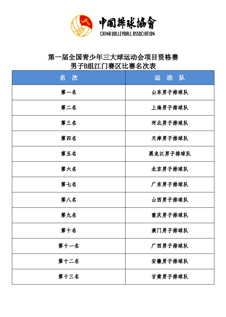 第一届全国青少年三大球运动会排球项目资格赛男子B组14号公告