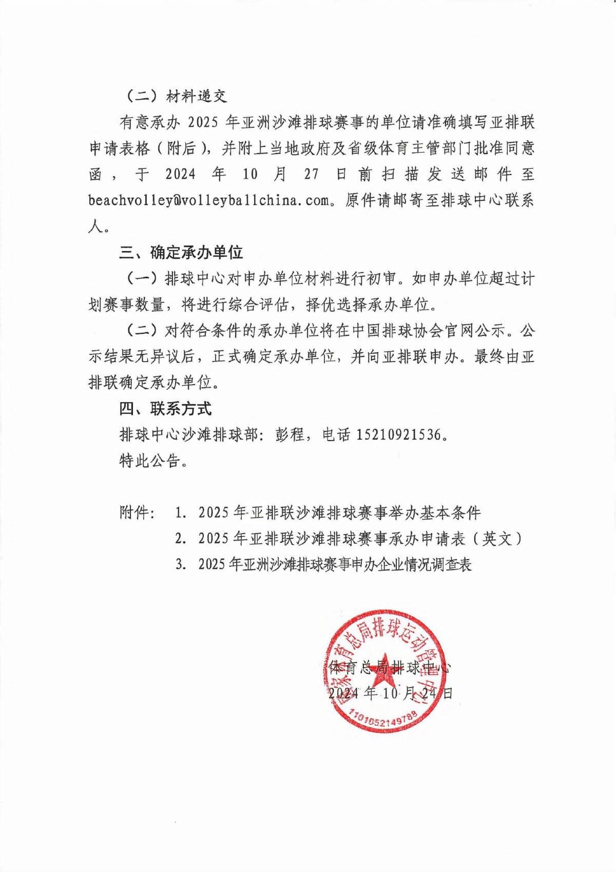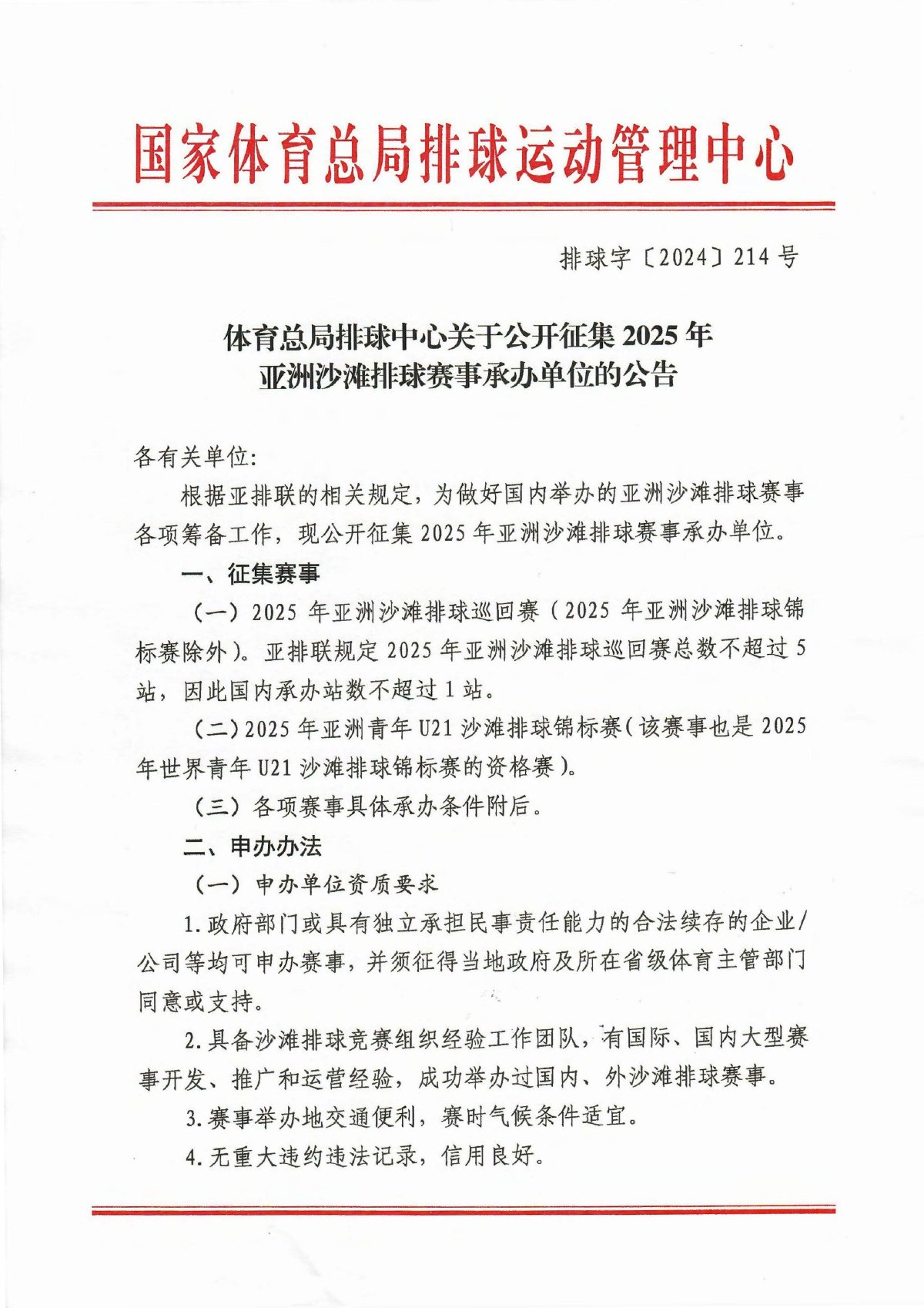 关于公开征集2025年亚洲沙滩排球赛事承办单位的公告