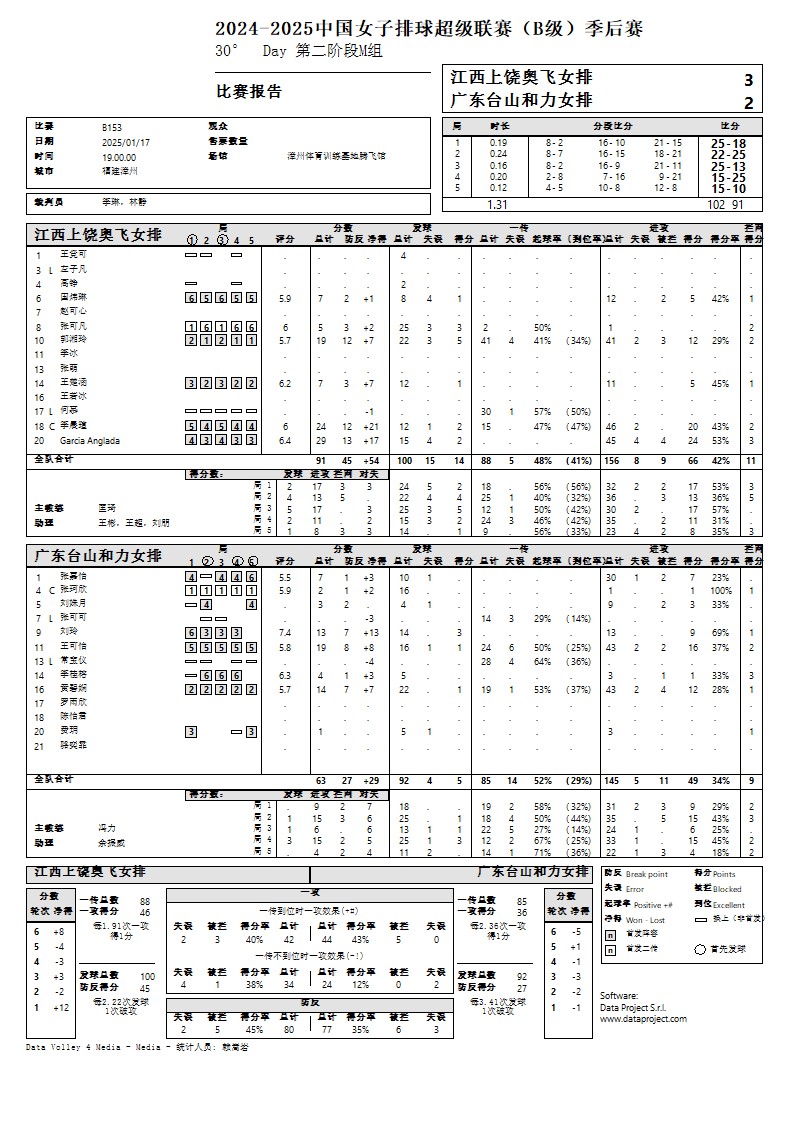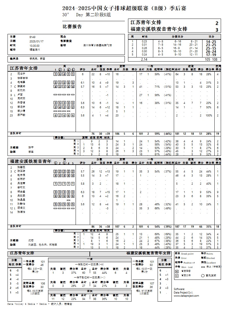2024-2025中国女子排球超级联赛B级季后赛17号公告
