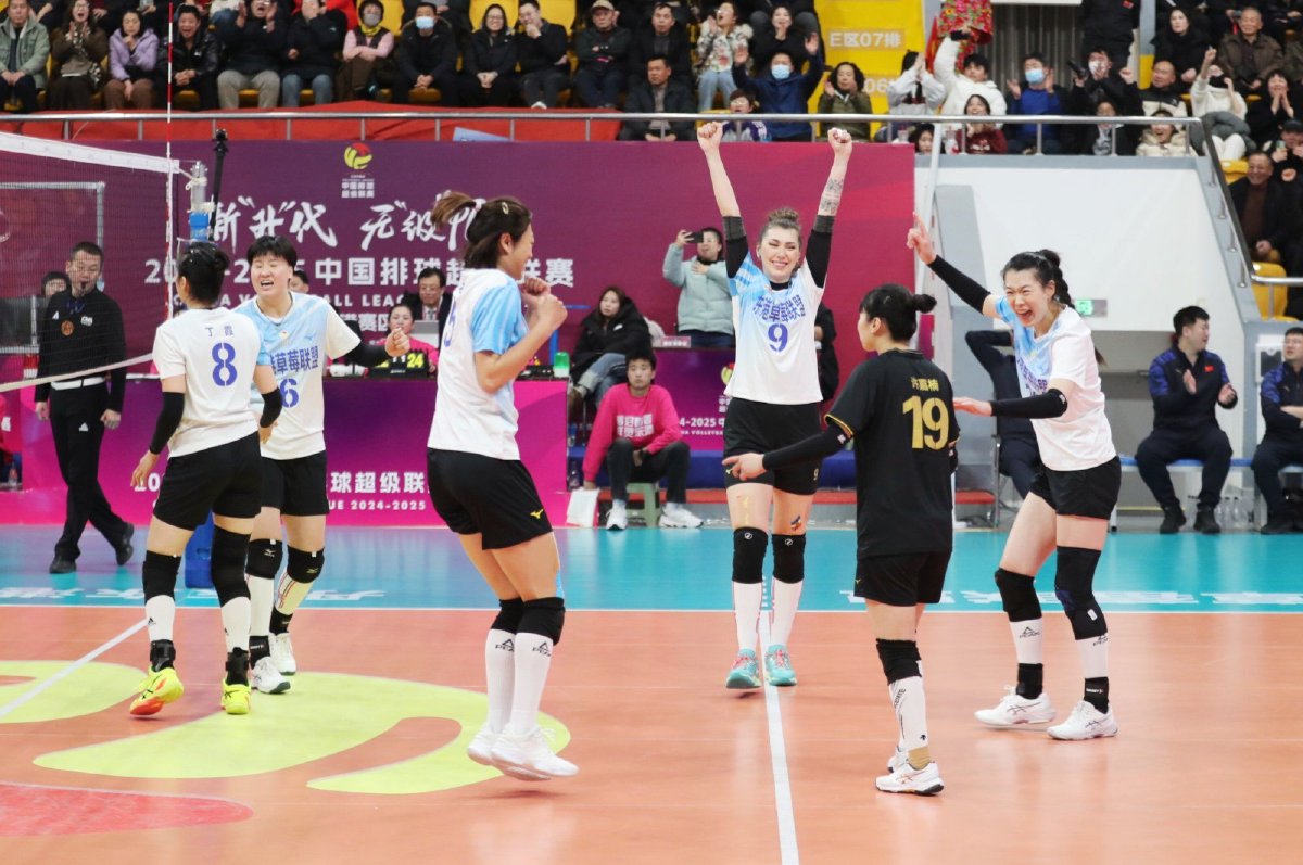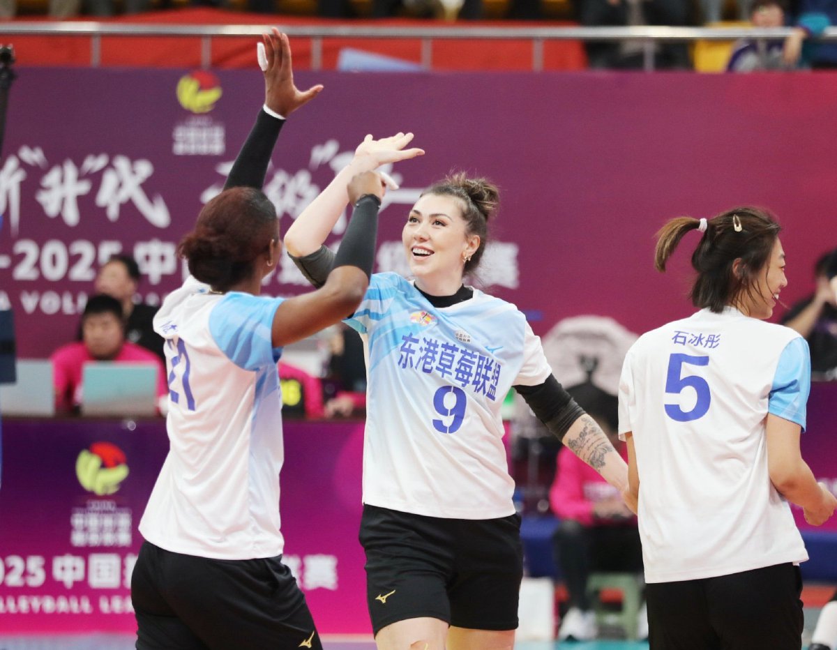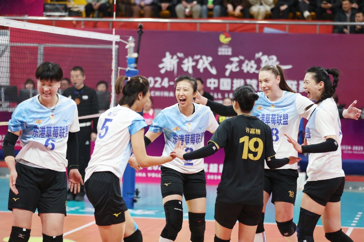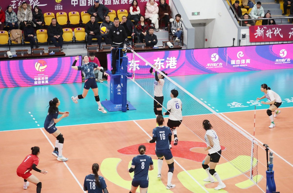 1月18日15时30分,2024-2025中国女子排球超级联赛季后赛A级第二十轮第79场比赛在东港体育馆打响。辽宁东港草莓女排主场3比1战胜北京北汽女排,四局比分分别为25比19、22比25、25比22和25比14。